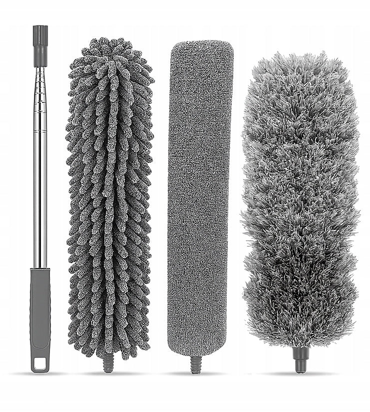 Miotełka teleskopowa 3w1 do kurzu. To wszechstronne narzędzie, które umożliwia precyzyjne sprzątanie trudno dostępnych miejsc, bez konieczności korzystania z drabiny. Wyposażona w 3 wymienne końcówki, pozwala na dostosowanie trybu czyszczenia do konkretnej powierzchni.