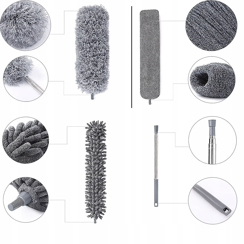• Mikrofibra: Delikatna dla mebli i powierzchni, skutecznie przyciąga kurz bez ryzyka zarysowań