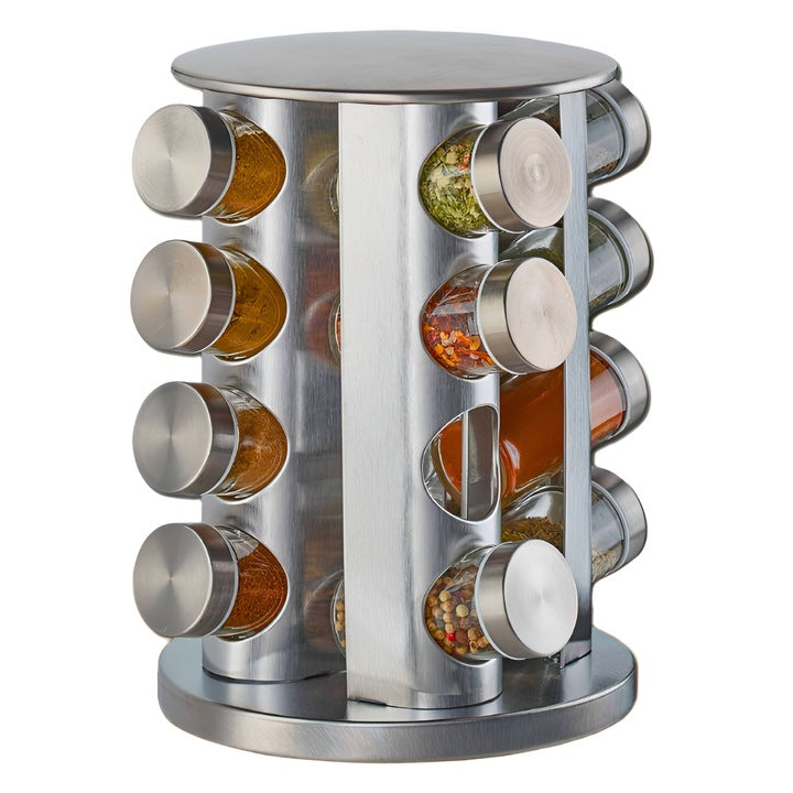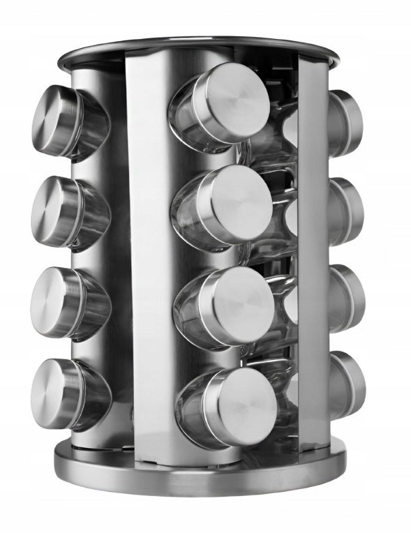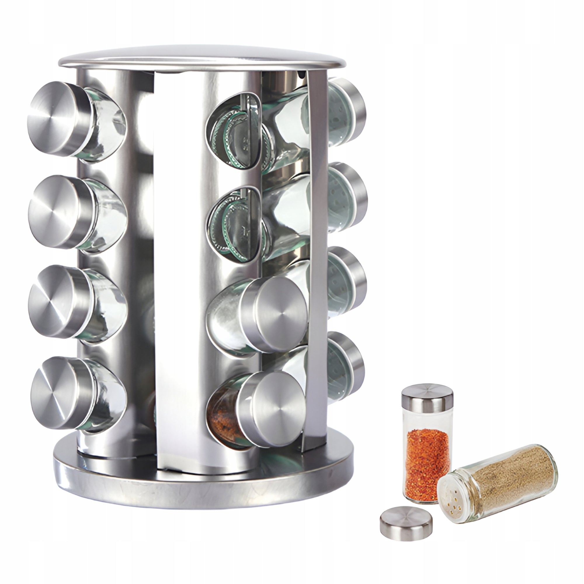 Postaw na Srebrny obrotowy organizer na przyprawy z 16 słoiczkami. Stylowy przyprawnik kuchenny, który zaprowadzi porządek na blacie i zapewni szybki dostęp do ulubionych ziół. Szklane słoiczki, szczelne zakrętki i nowoczesny design w jednym zestawie.