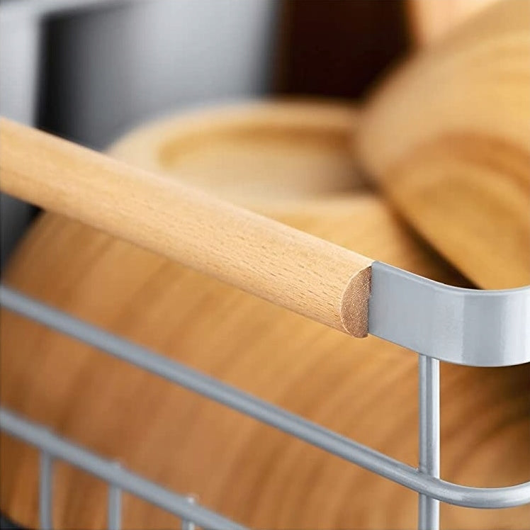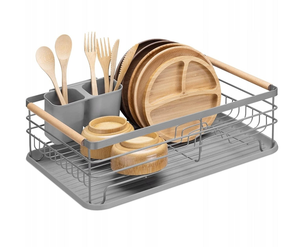 ✔️Uscătorul metalic negru cu mâneri din lemn este o soluție elegantă pentru orice bucătărie!