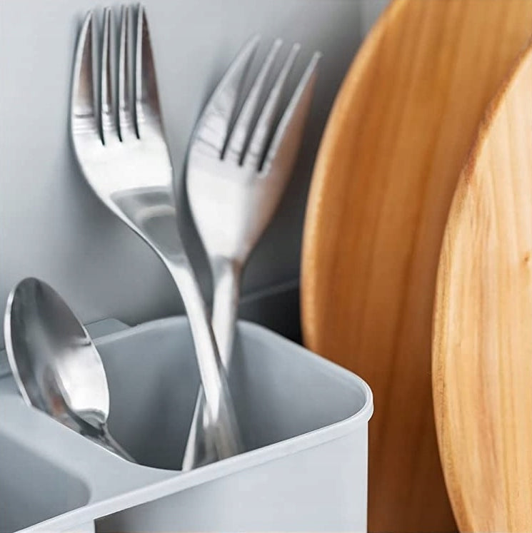 ✔️Suportul de plastic, detașabil, cu două compartimente pentru tacâmuri