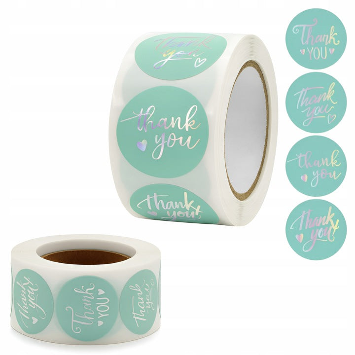 Postaw na Naklejki Thank You miętowe. Okrągłe etykiety samoprzylepne 2,5 cm na rolce 500 szt. Nadaj swoim upominkom, przesyłkom i produktom elegancki, akcent w kilka sekund!