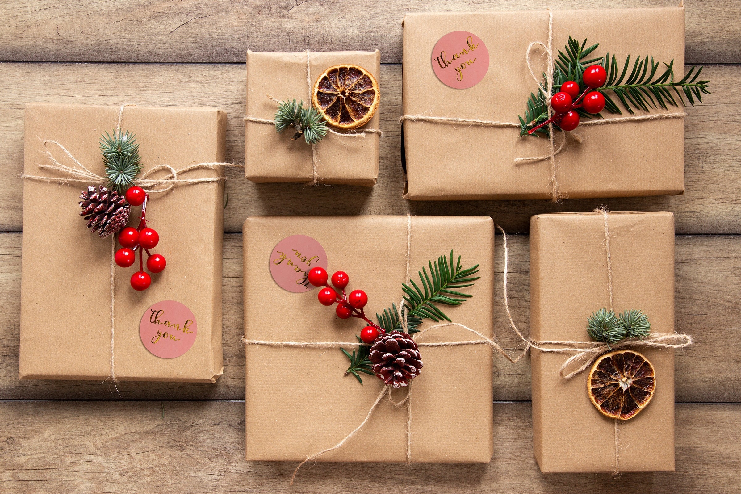 - Czytelny, uniwersalny przekaz: Napis „Thank You” subtelnie podkreśla wdzięczność przy zamówieniach, upominkach i przesyłkach