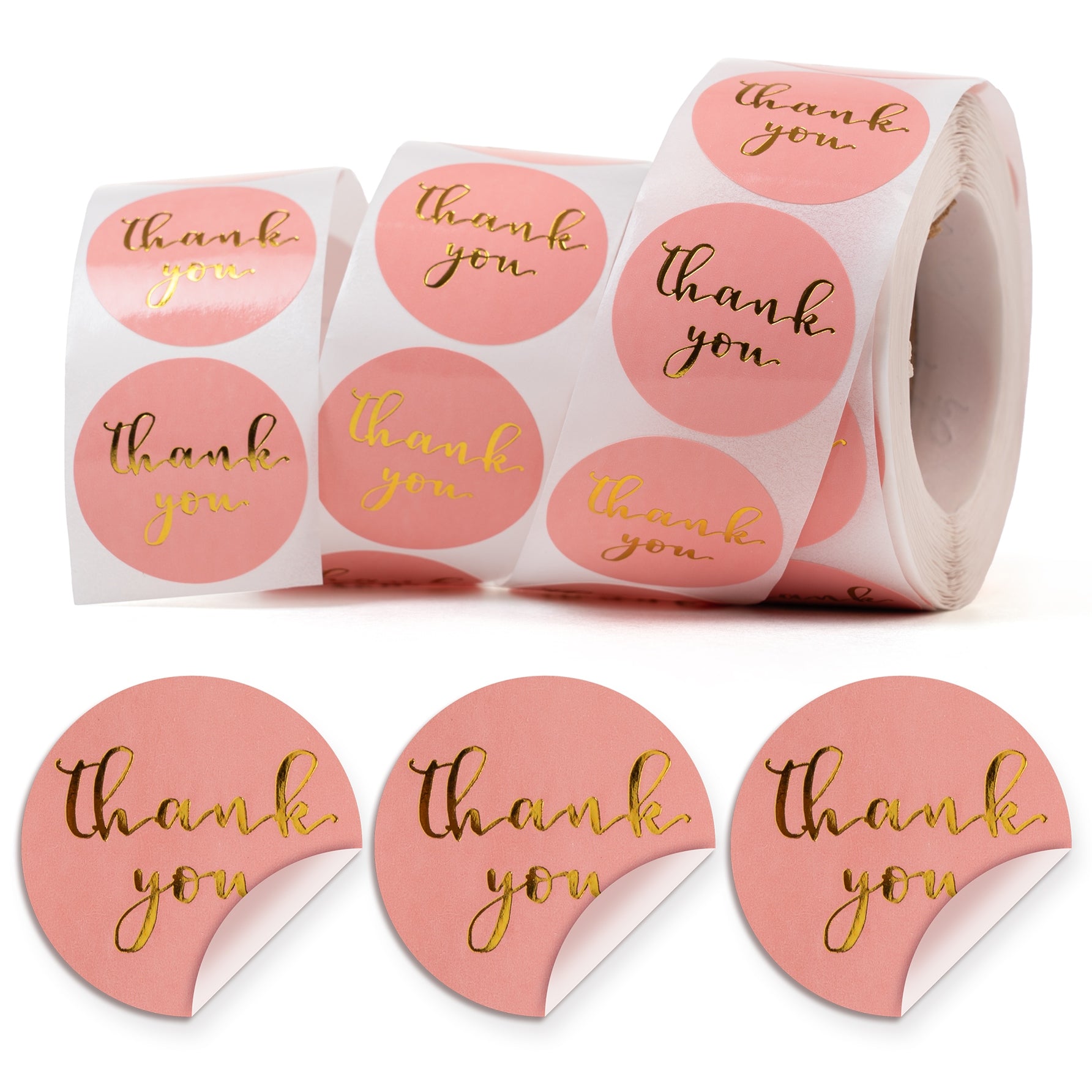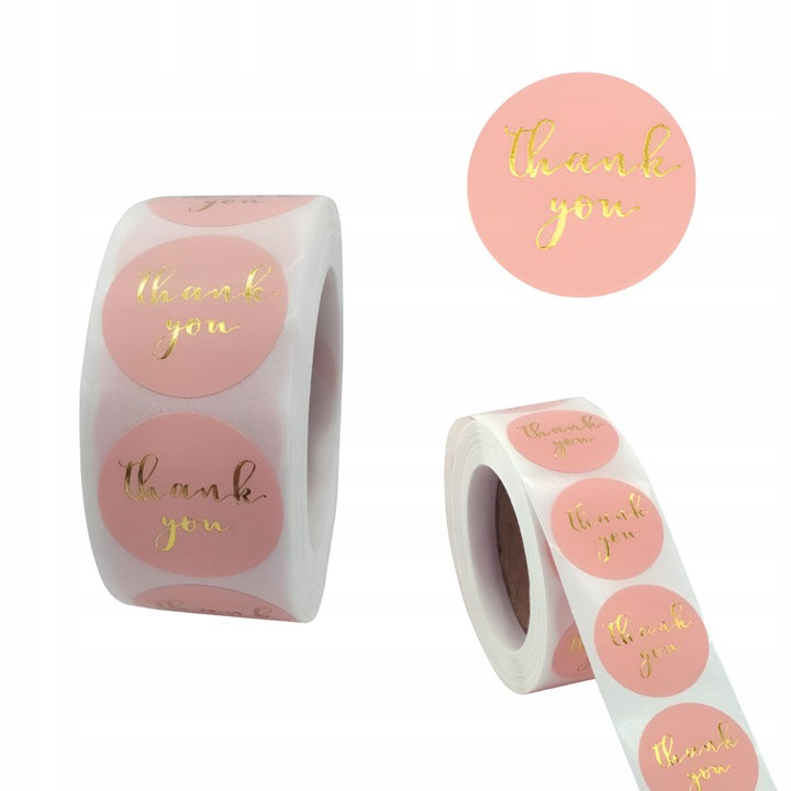 Postaw na Naklejki Thank You różowe. Okrągłe etykiety samoprzylepne 2,5 cm na rolce 500 szt. Nadaj swoim upominkom, przesyłkom i produktom elegancki, akcent w kilka sekund!