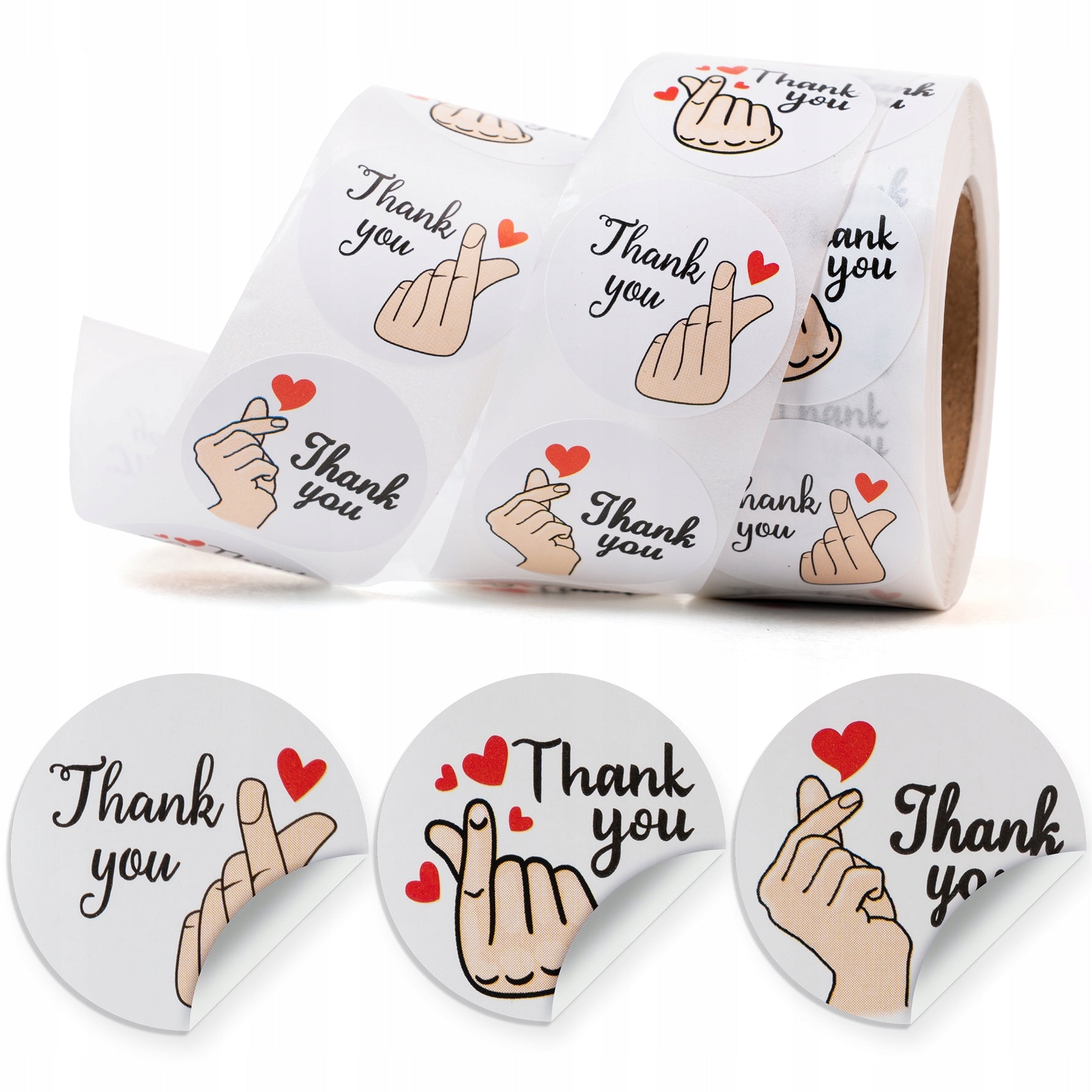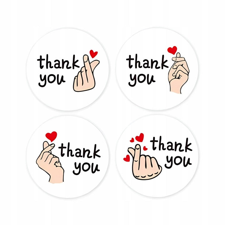 Postaw na Thank You z gestem dłoni. Okrągłe etykiety samoprzylepne 2,5 cm na rolce 500 szt.  Nadaj swoim upominkom, przesyłkom i produktom elegancki, akcent w kilka sekund!