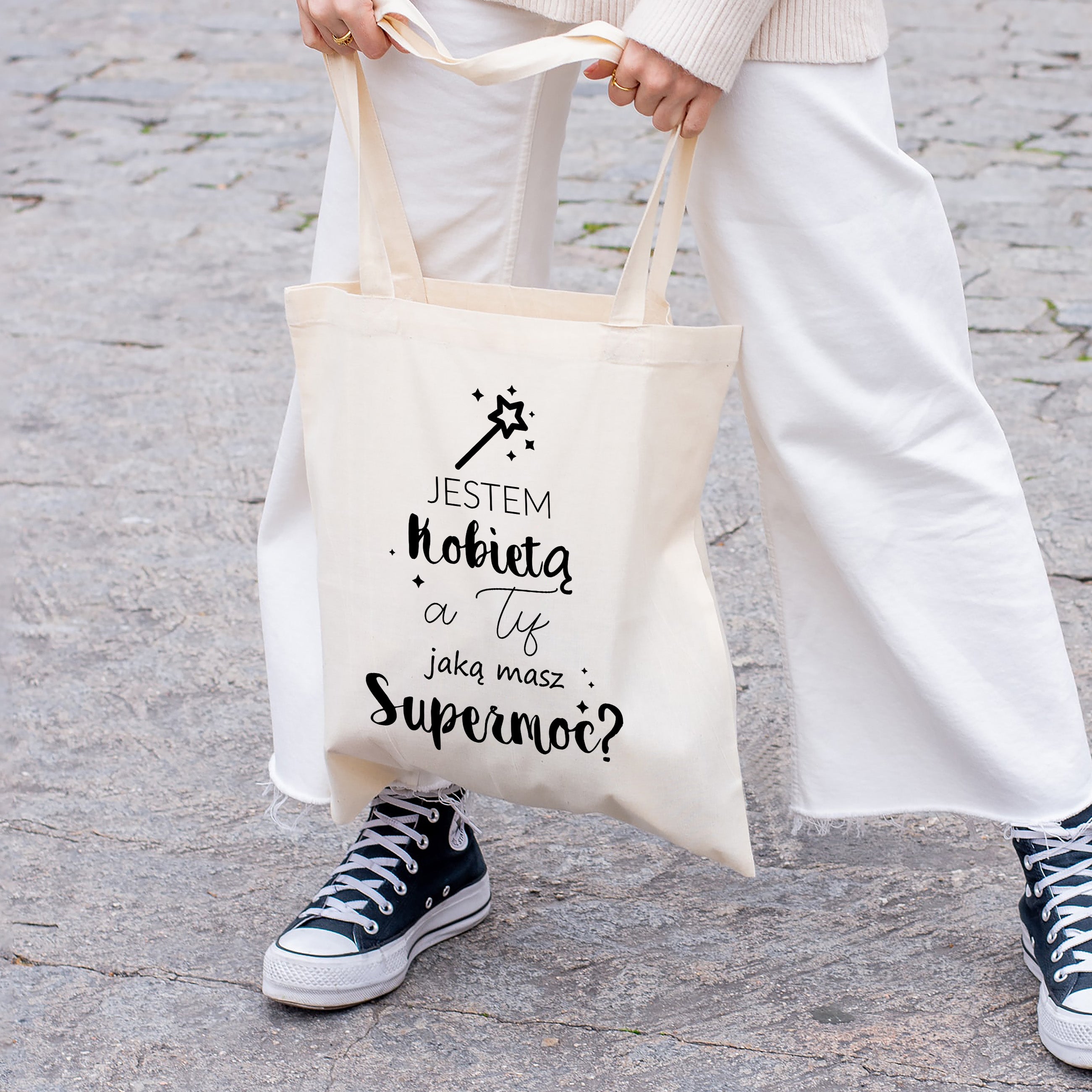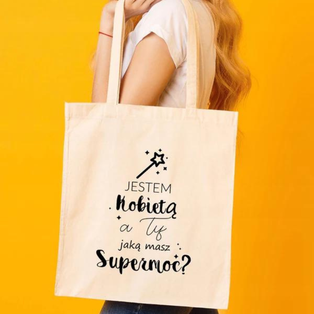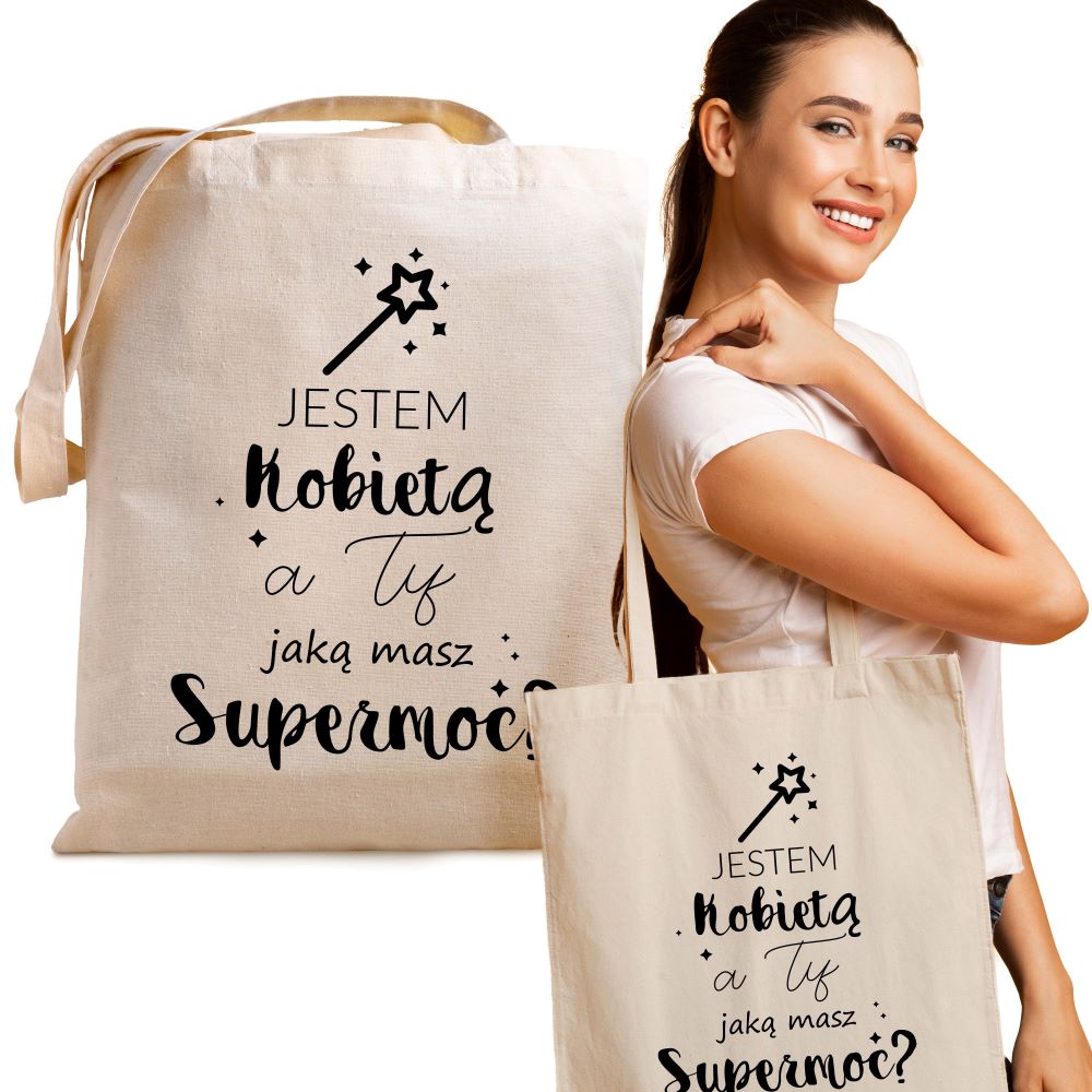 Cadou de Ziua Femeii - geantă imprimată ecru