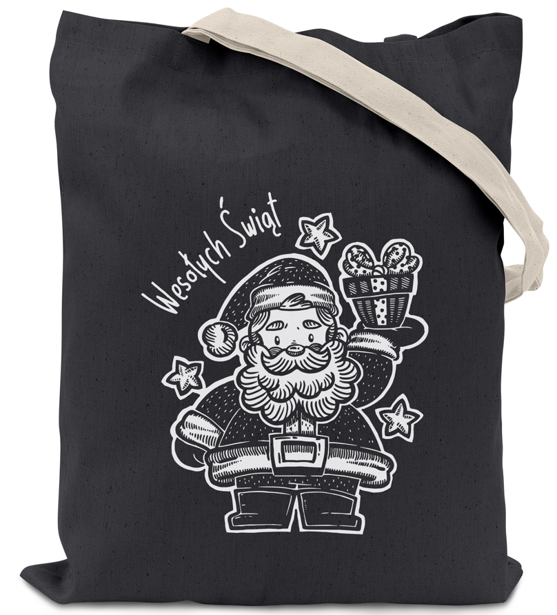 Torba bawełniana świąteczna 38x42cm CIEMNOSZARA MIKOŁAJ
