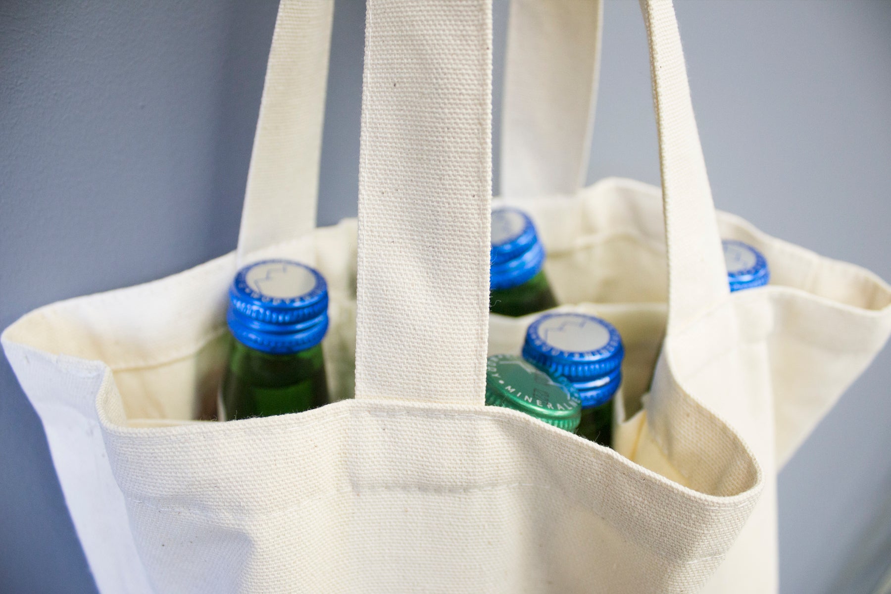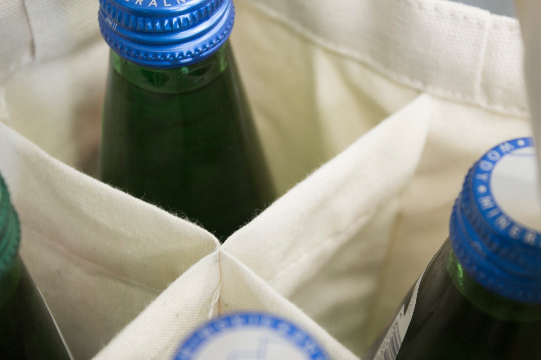 cu gramatura de 140g/m2. Geanta poate ține până la șase sticle de până la 0,5l