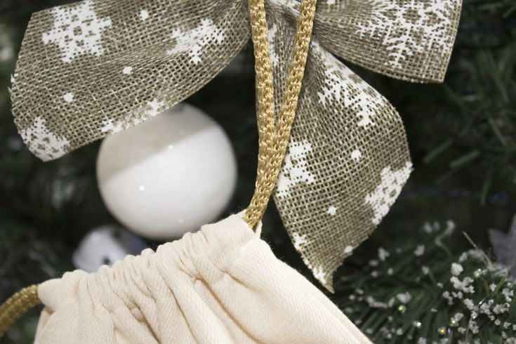 Sac din bumbac ecru 20x30cm 135g/m2 cordon auriu