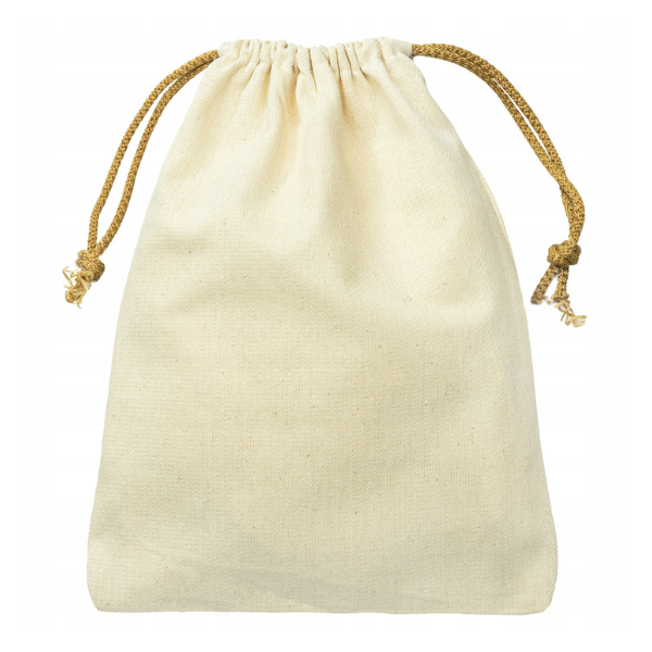 Sac din bumbac ecru 20x30cm 135g/m2 cordon auriu Acesta este comandat cu întârziere și va fi expediat de îndată ce va fi din nou în stoc.