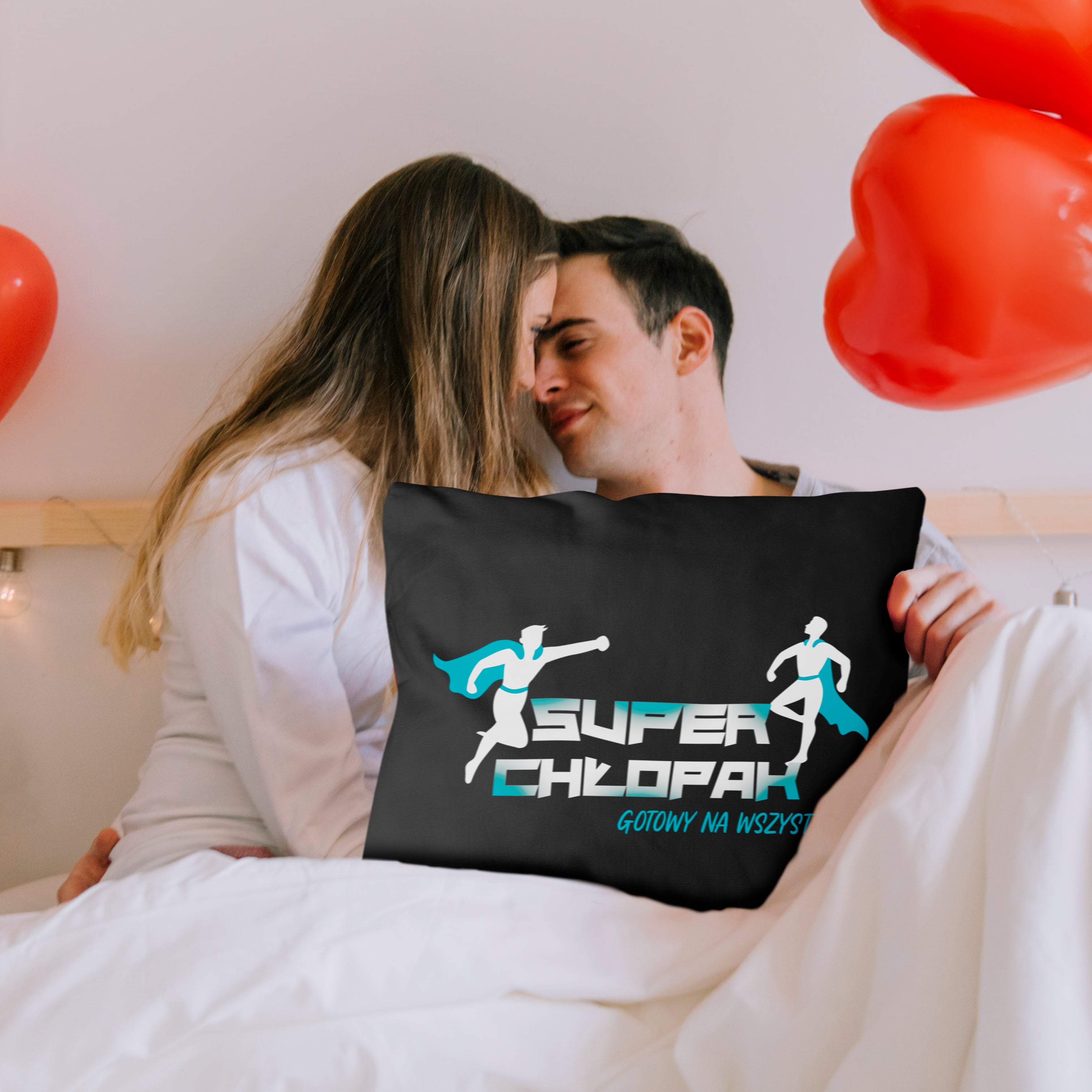 Prezent na walentynki - poduszka SUPER CHŁOPAK GOTOWY NA WSZYSTKO