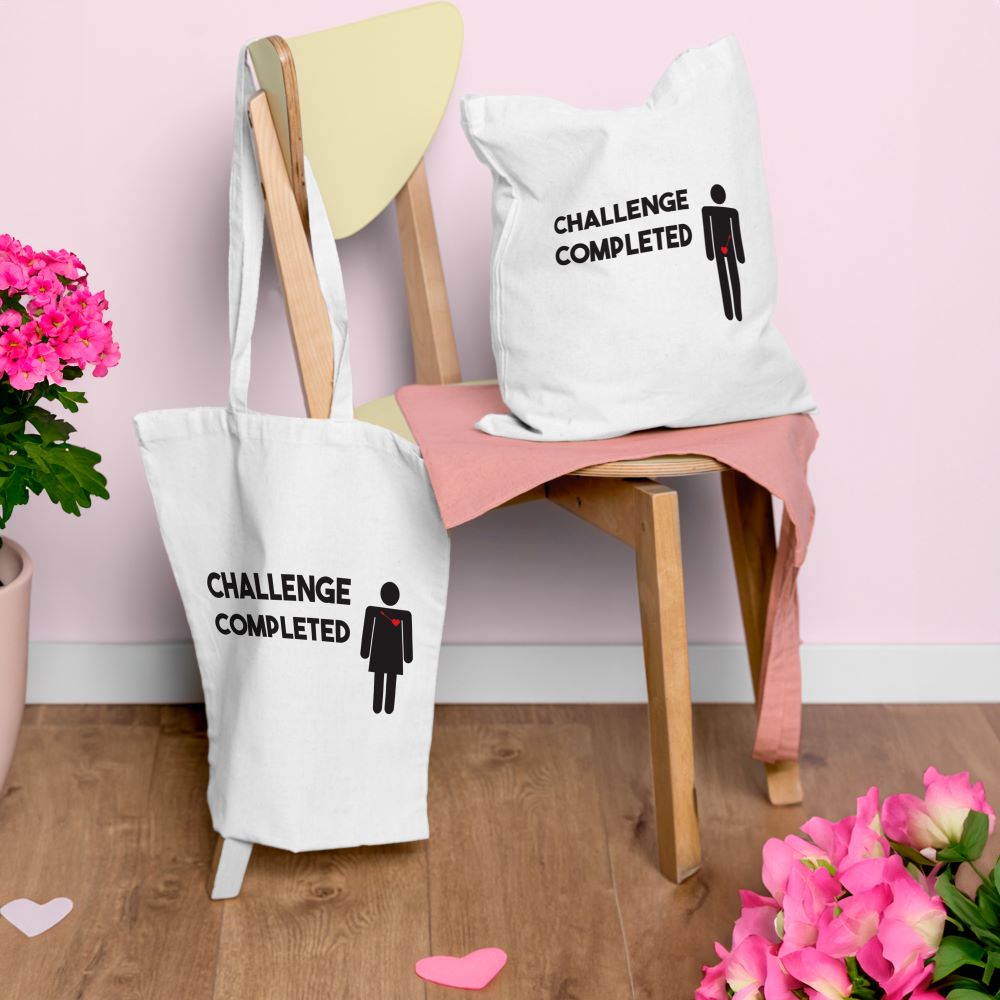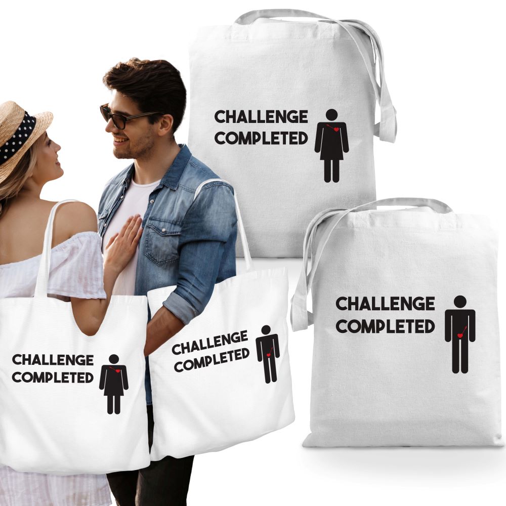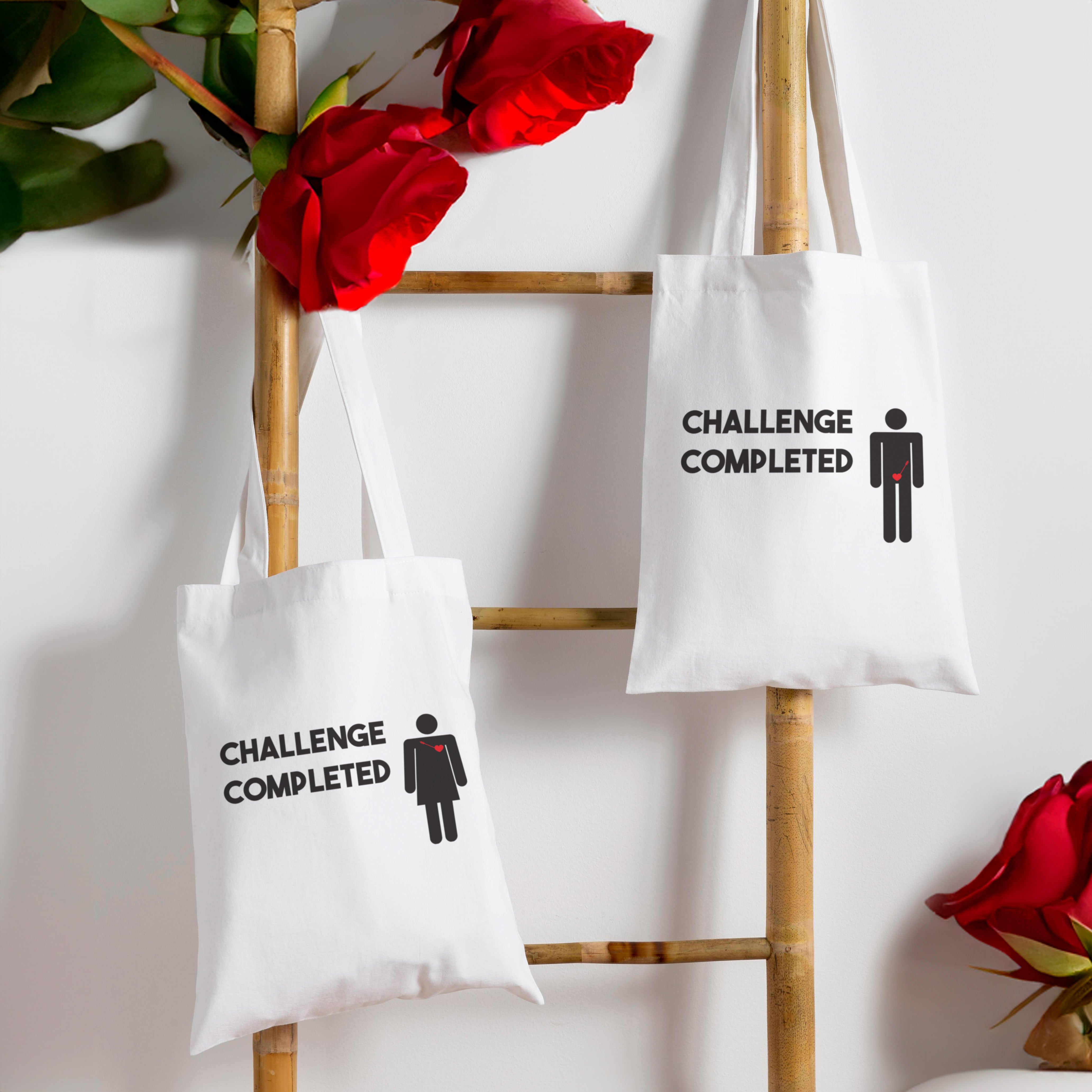 Două genți din bumbac cu imprimare. Accesoriu modă ideal pentru cupluri și cadou original de Ziua Îndrăgostiților.