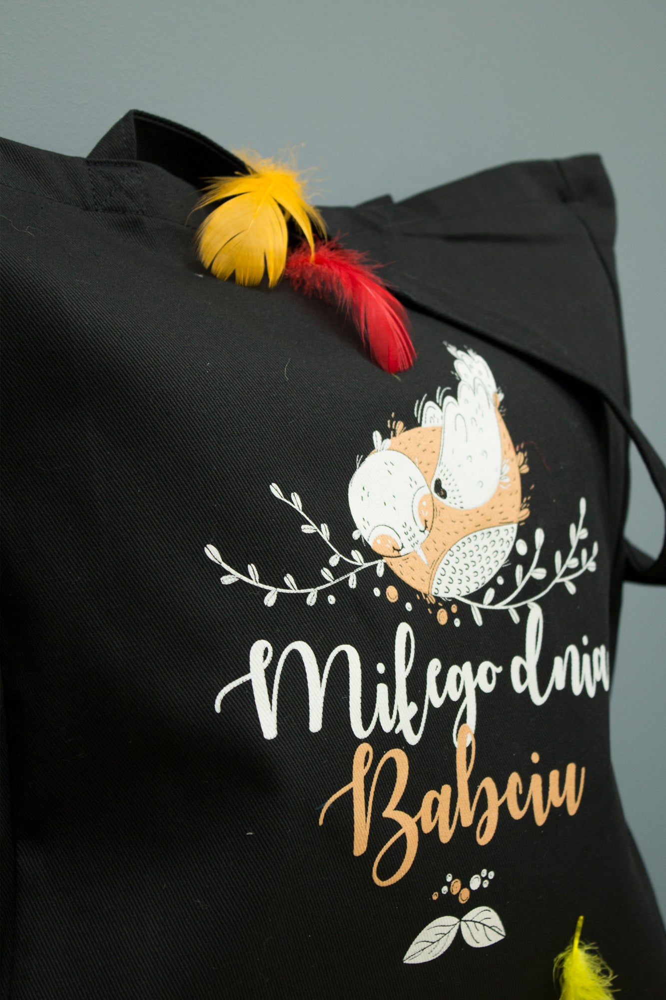 Torba Bawełniana Miłego Dnia Babciu Prezent na Dzień Babci Czarna