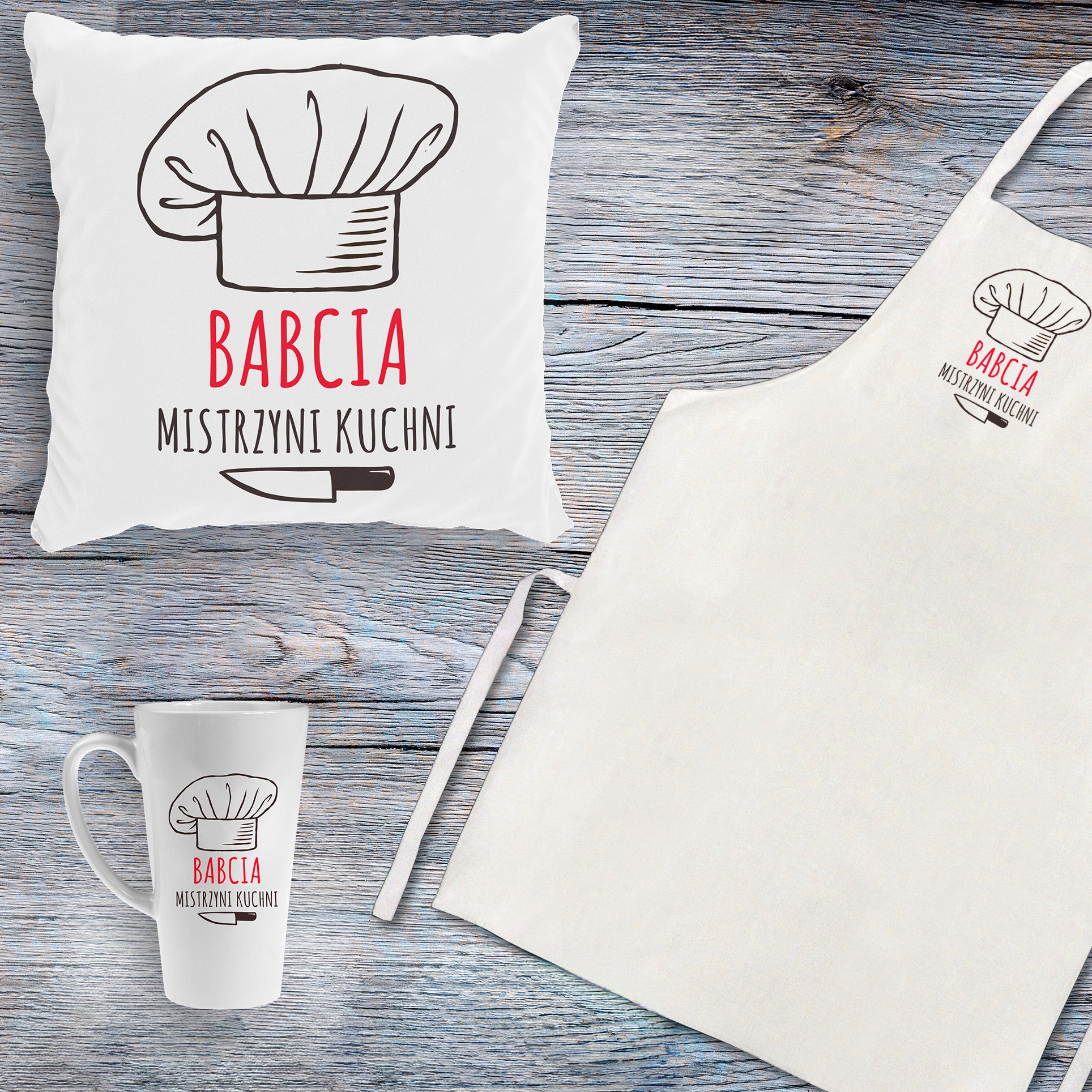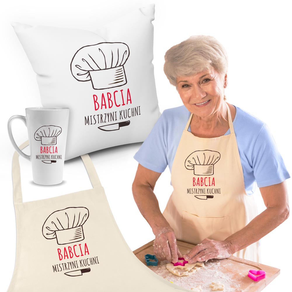 Zestaw Fartuch,Kubek,Poduszka Babcia Mistrzyni Kuchni Prezent na Dzień Babci
