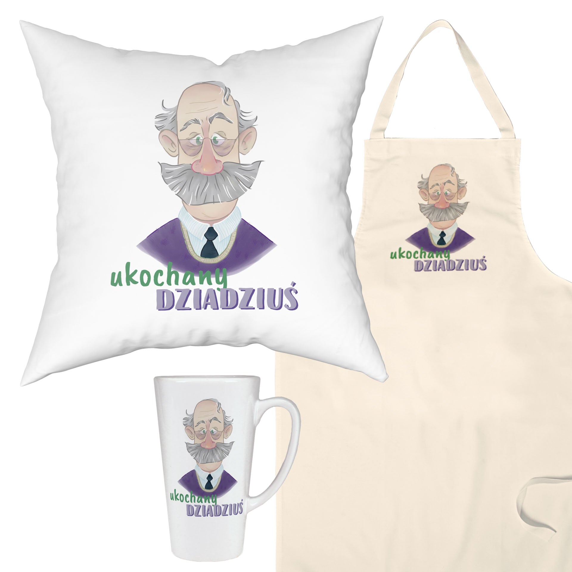 Zestaw Fartuch,Kubek,Poduszka Ukochany Dziadziuś Prezent na Dzień Dziadka
