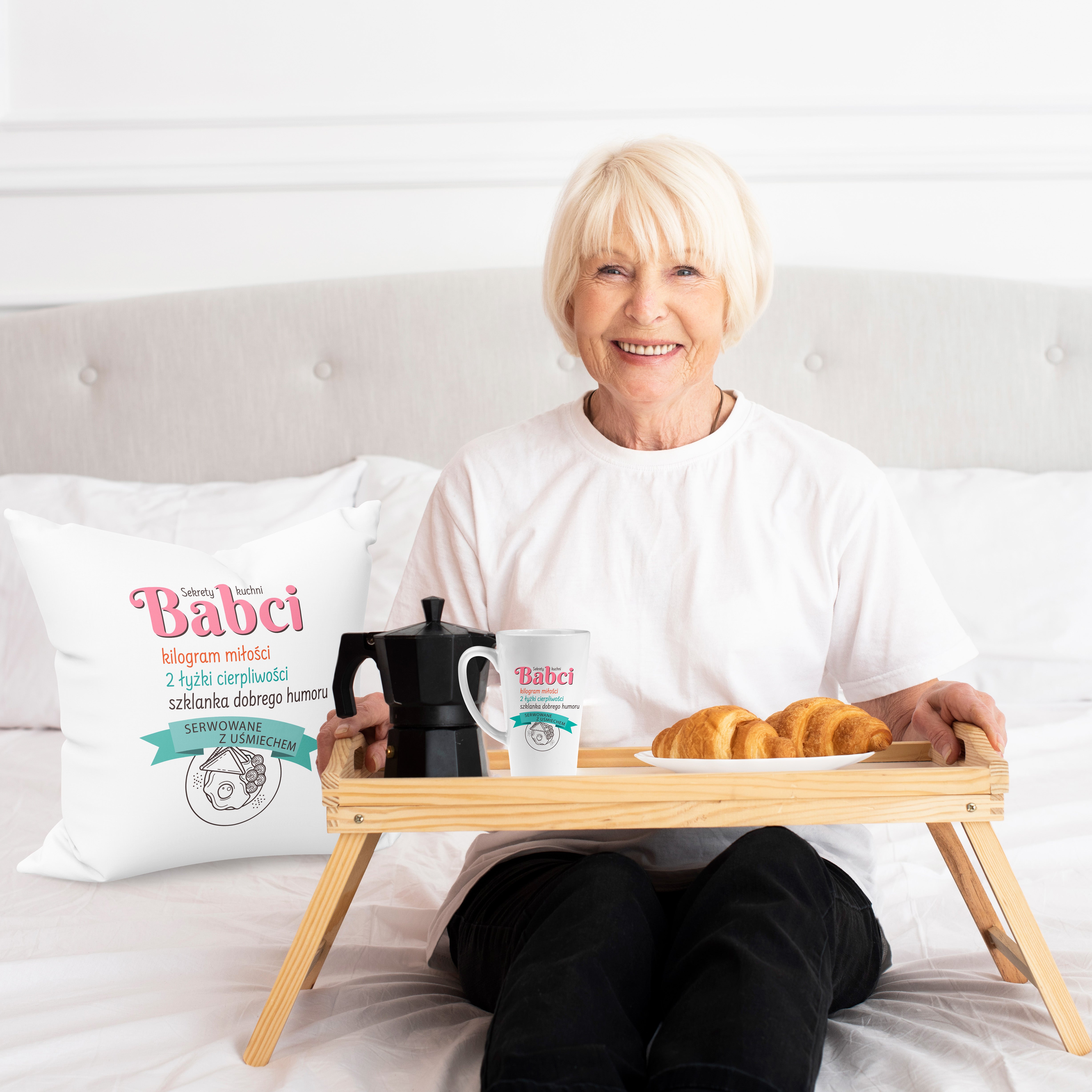 Zestaw Fartuch,Kubek,Poduszka Sekrety Kuchni Babci Prezent na Dzień Babci
