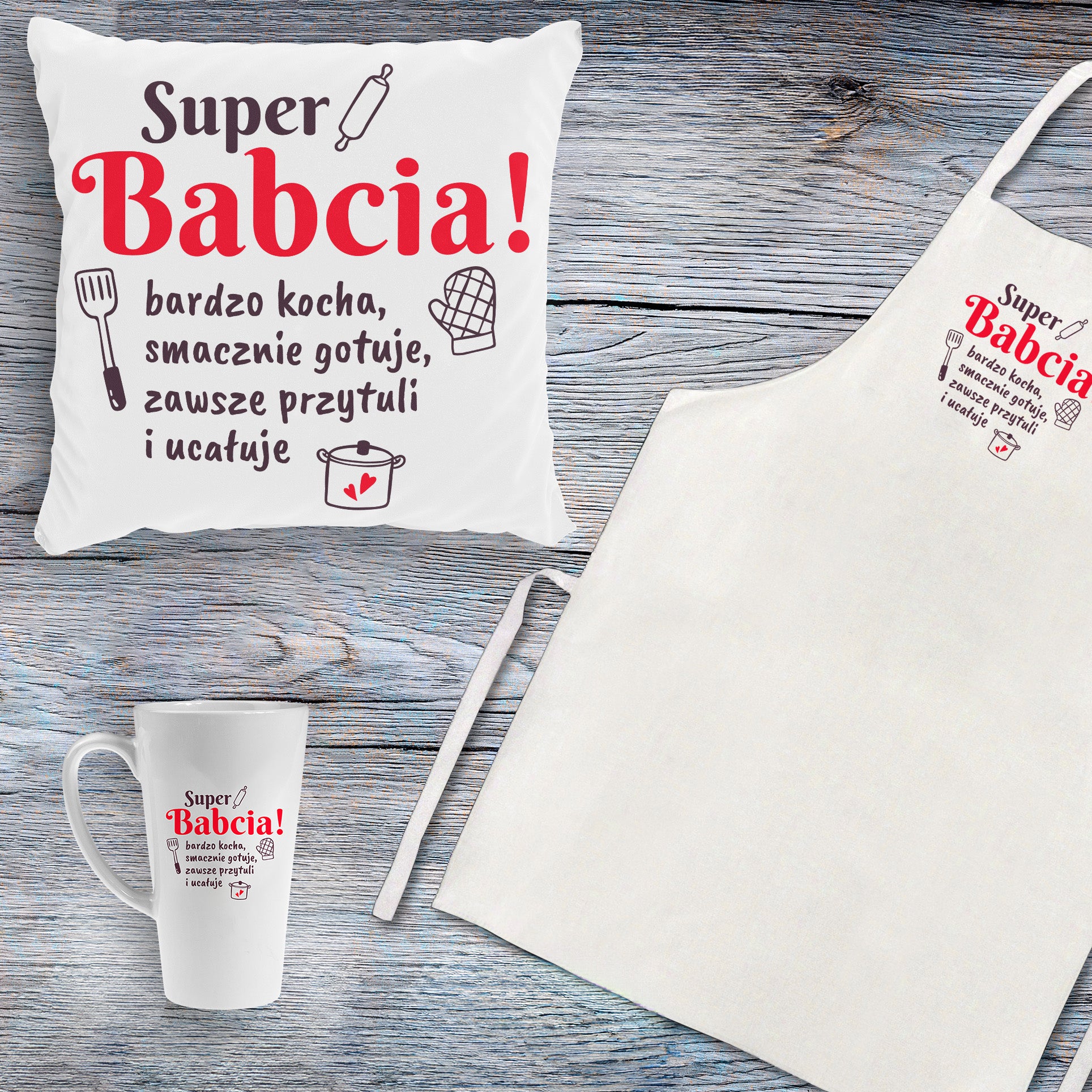 Set șorț, cană, pernă Super bunica cadou pentru Ziua bunicii