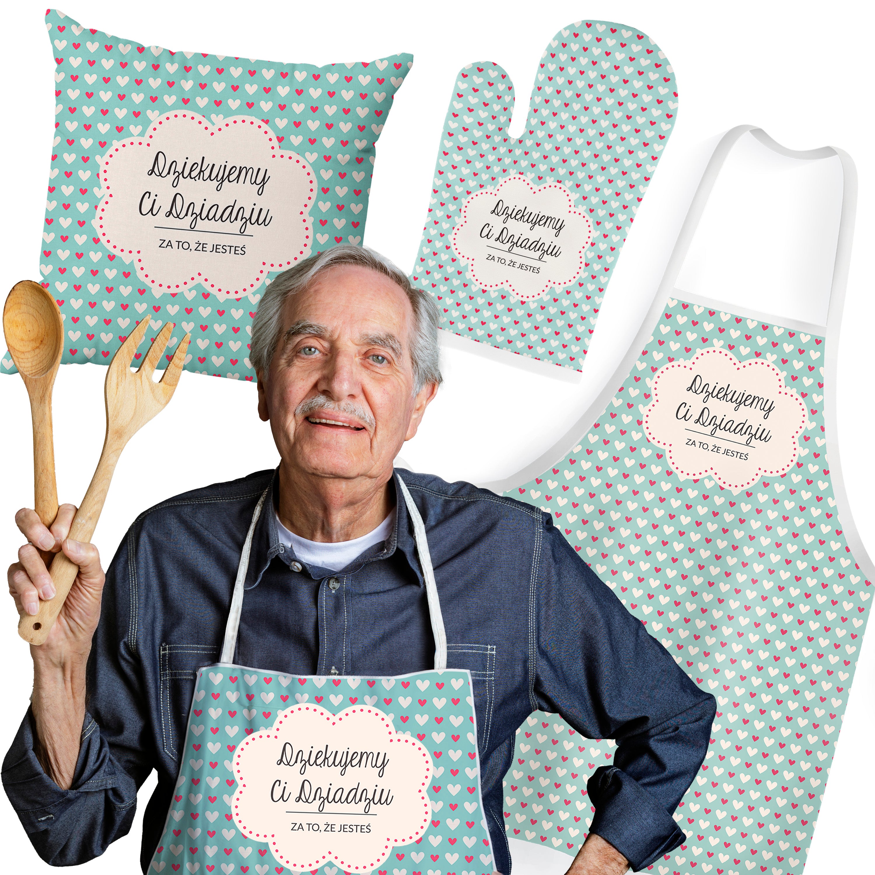 Set șorț, mănușă, pernă Mulțumesc bunicului cadou pentru Ziua bunicului