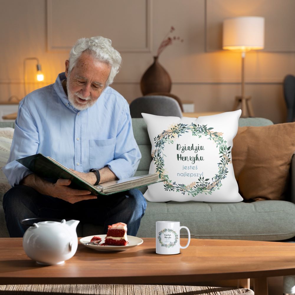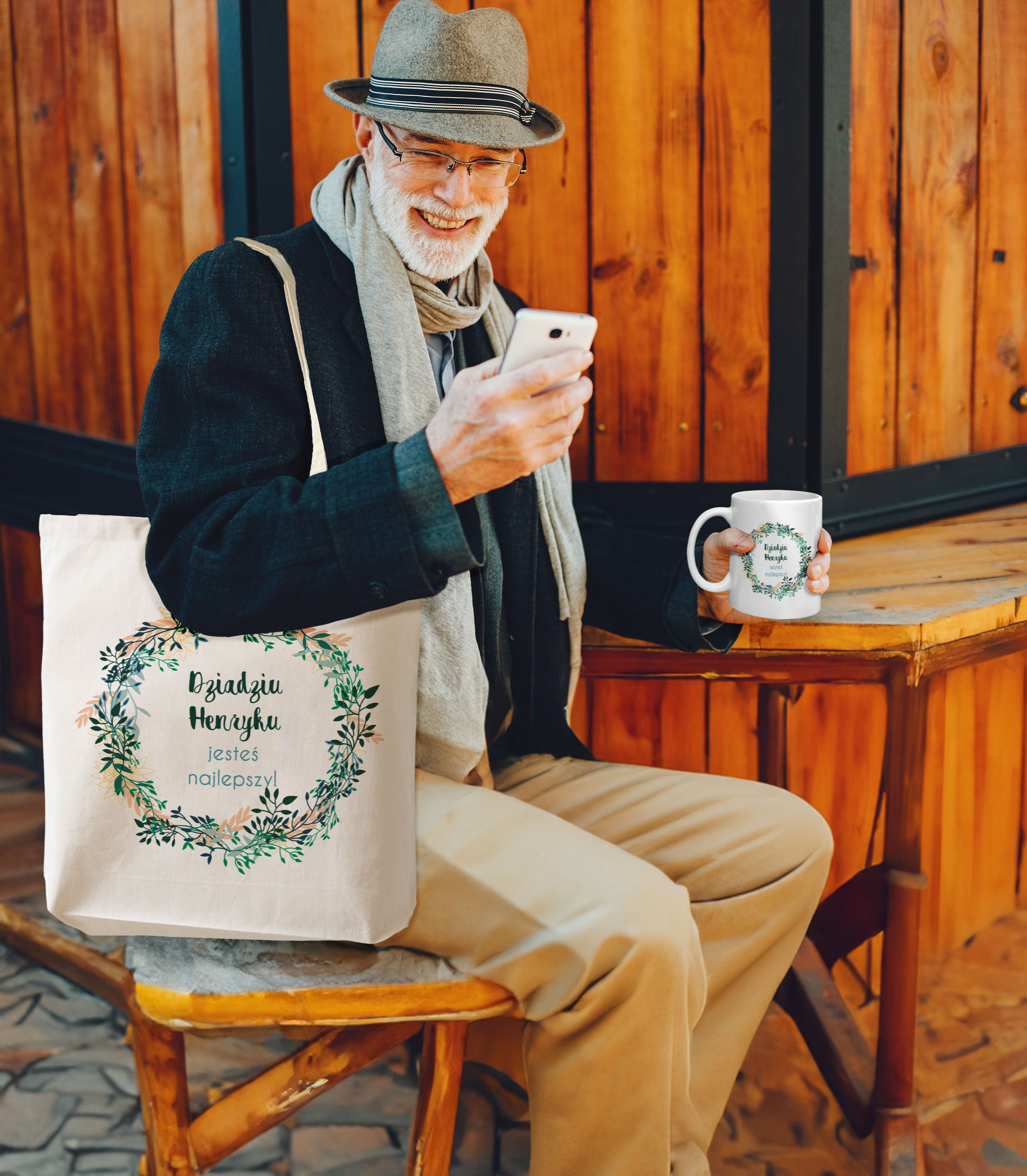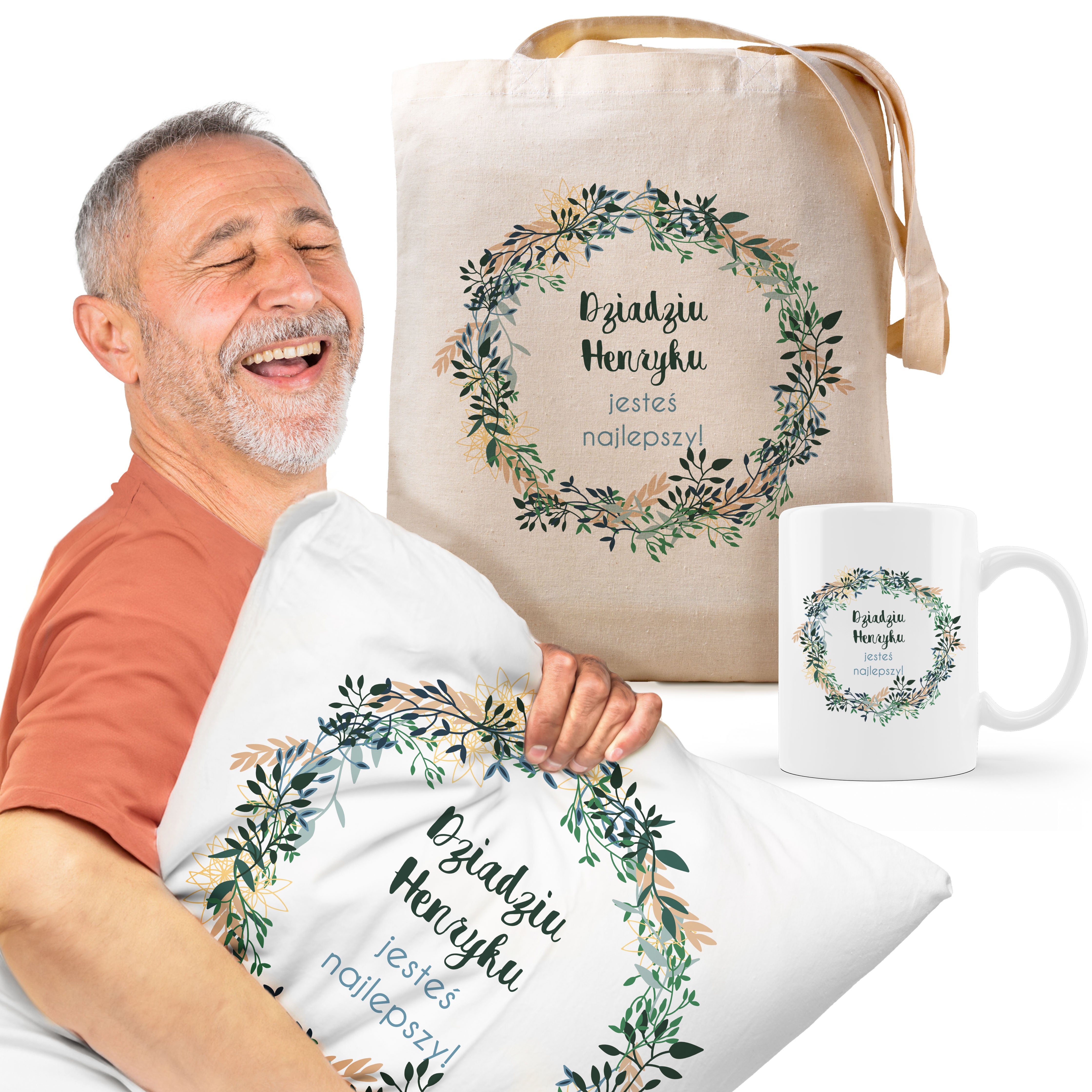 Zestaw personalizowany Torba Bawełniana,Kubek,Poduszka Dziadku jesteś Najlepszy+Imię Prezent na Dzień Dziadka