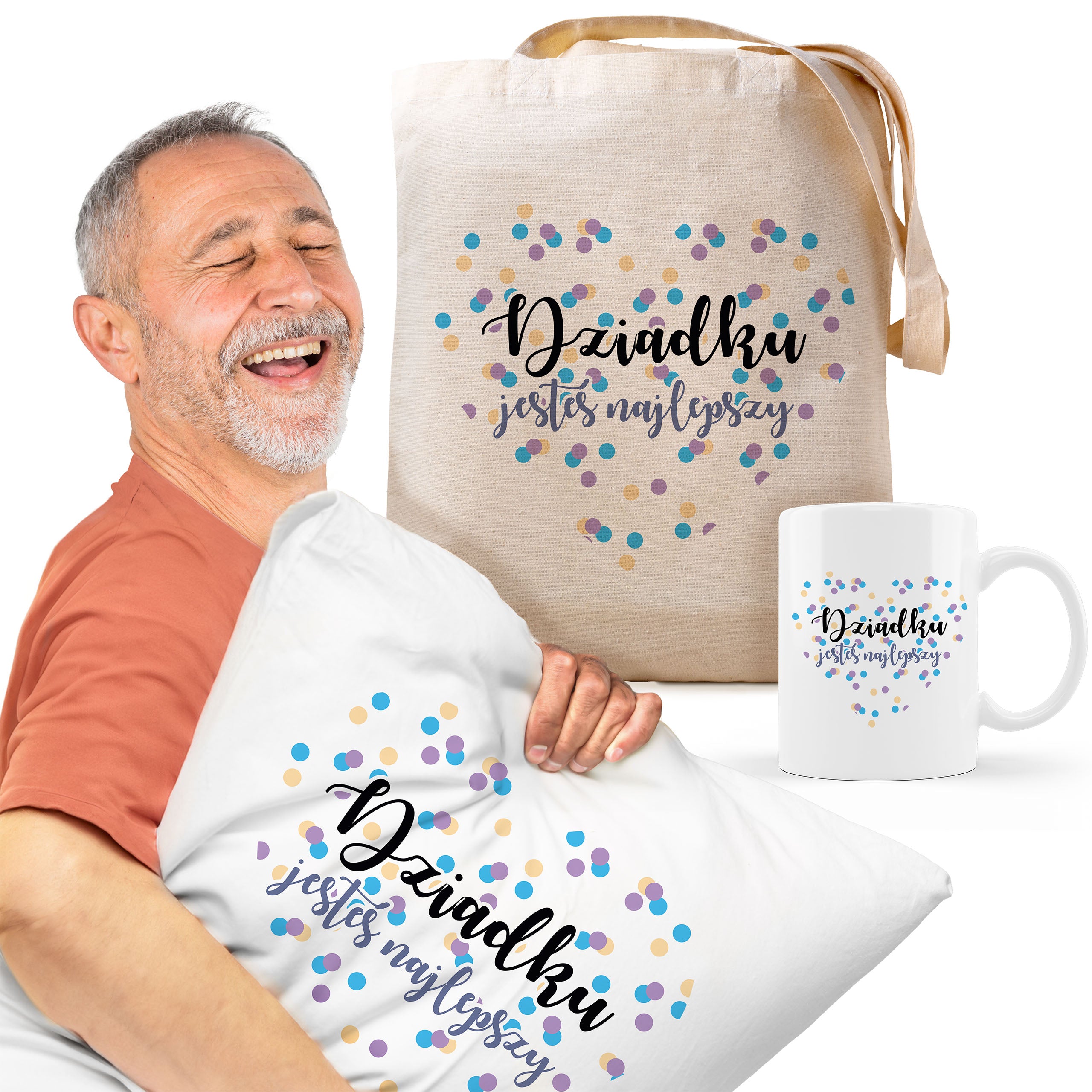 Zestaw Torba bawełniana,Kubek,Poduszka Dziadku jesteś Najlepszy Prezent na Dzień Dziadka