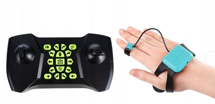 - Zestaw zawiera: Samochód RC, pilot klasyczny, pilot–opaska na rękę, ładowarka, akumulator