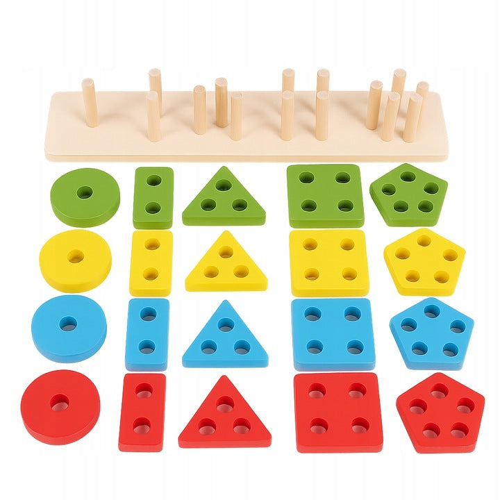 Drewniana układanka edukacyjna figury geometryczne dla dzieci 2+, która rozwija motorykę małą, koordynację ręka–oko i logiczne myślenie. Zamów klocki edukacyjne sorter kształtów z kolorowymi elementami i solidną drewnianą podstawą i podaruj dziecku mądrą zabawę każdego dnia!