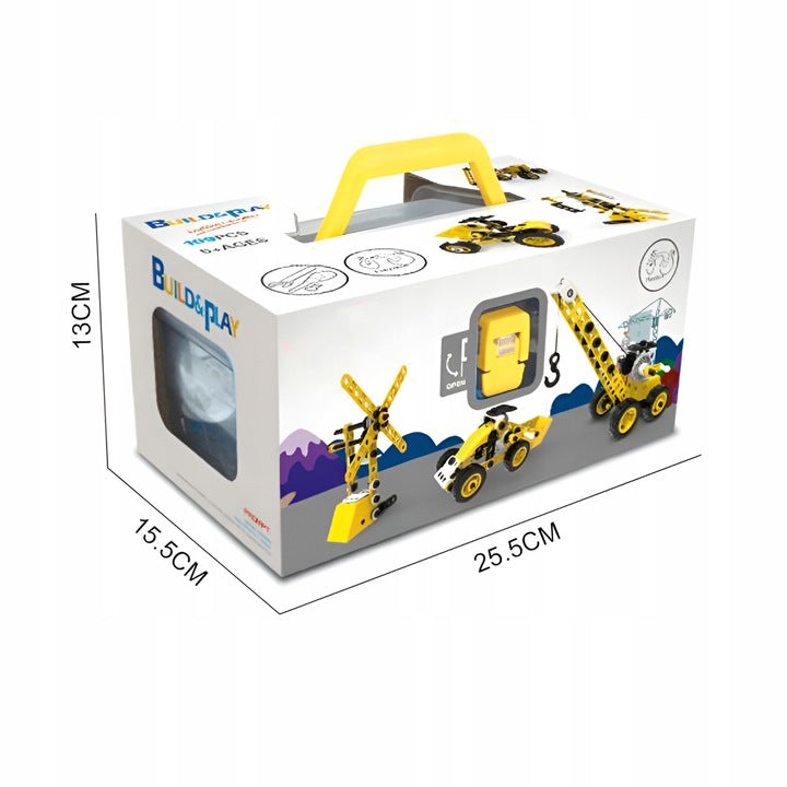 - W zestawie: 100 el. konstrukcyjnych, śrubokręt, klucz do skręcania, walizka do przechowywania