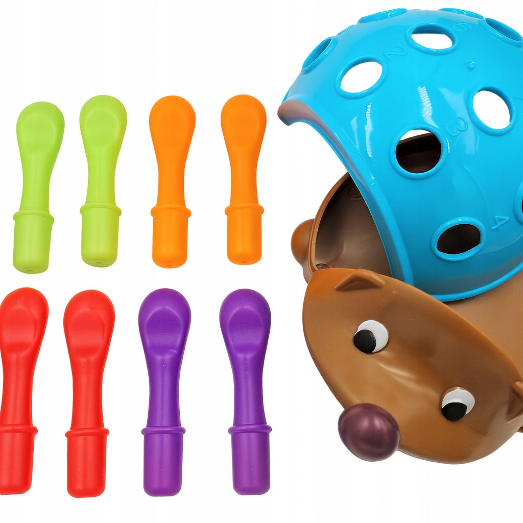 • Trening małej motoryki: Wkładanie i wyjmowanie „kolców” wzmacnia chwyt, precyzję ruchu i koordynację ręka–oko