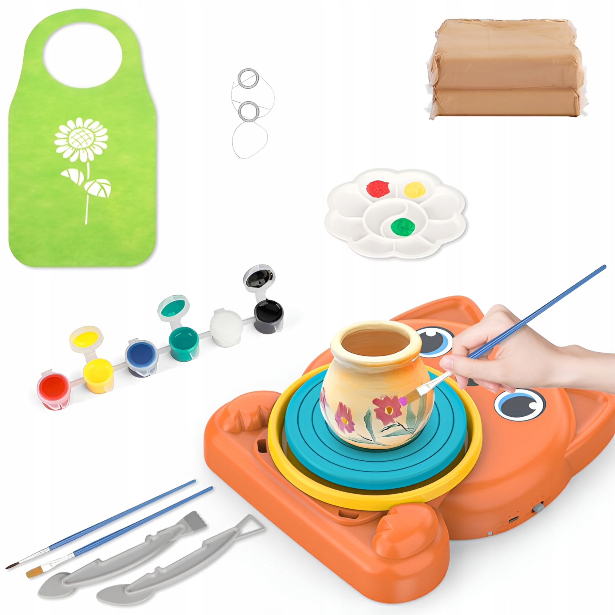 • Elementy zestawu: Koło garncarskie, glina, farby, pędzle, narzędzia do modelowania, kabel USB-C