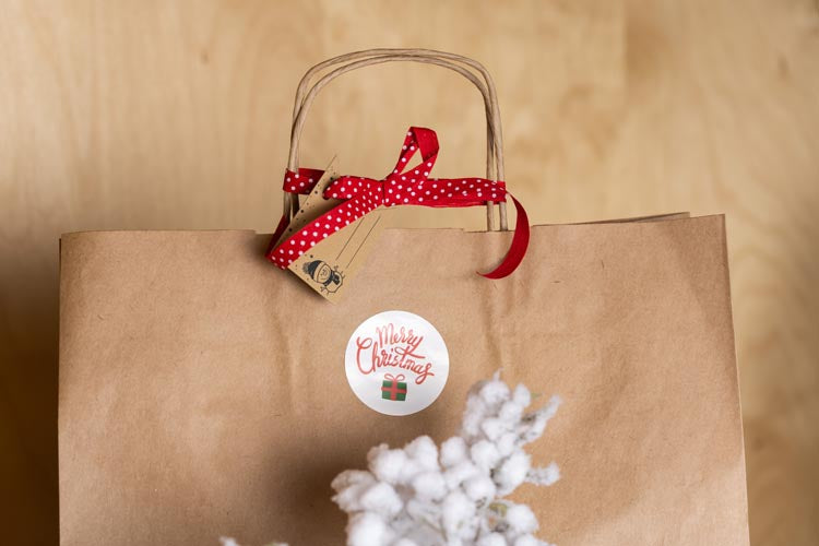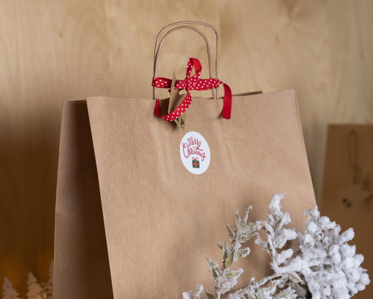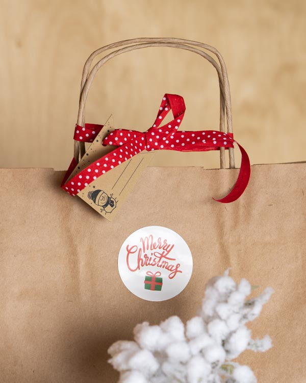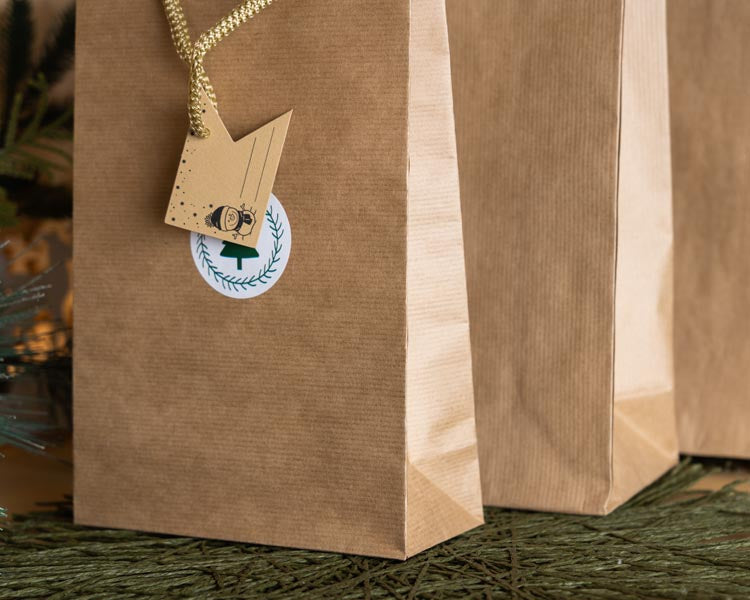 Etichete drăguțe: Etichetele sunt mici cartonașe cu un loc pentru a scrie numele, dedicații sau urări pentru persoana care primește cadoul. Acestea au, de asemenea, un model de Crăciun și o culoare rustică, potrivindu-se perfect cu întregul set. Etichetele adaugă un accent personal și cald cadourilor tale.