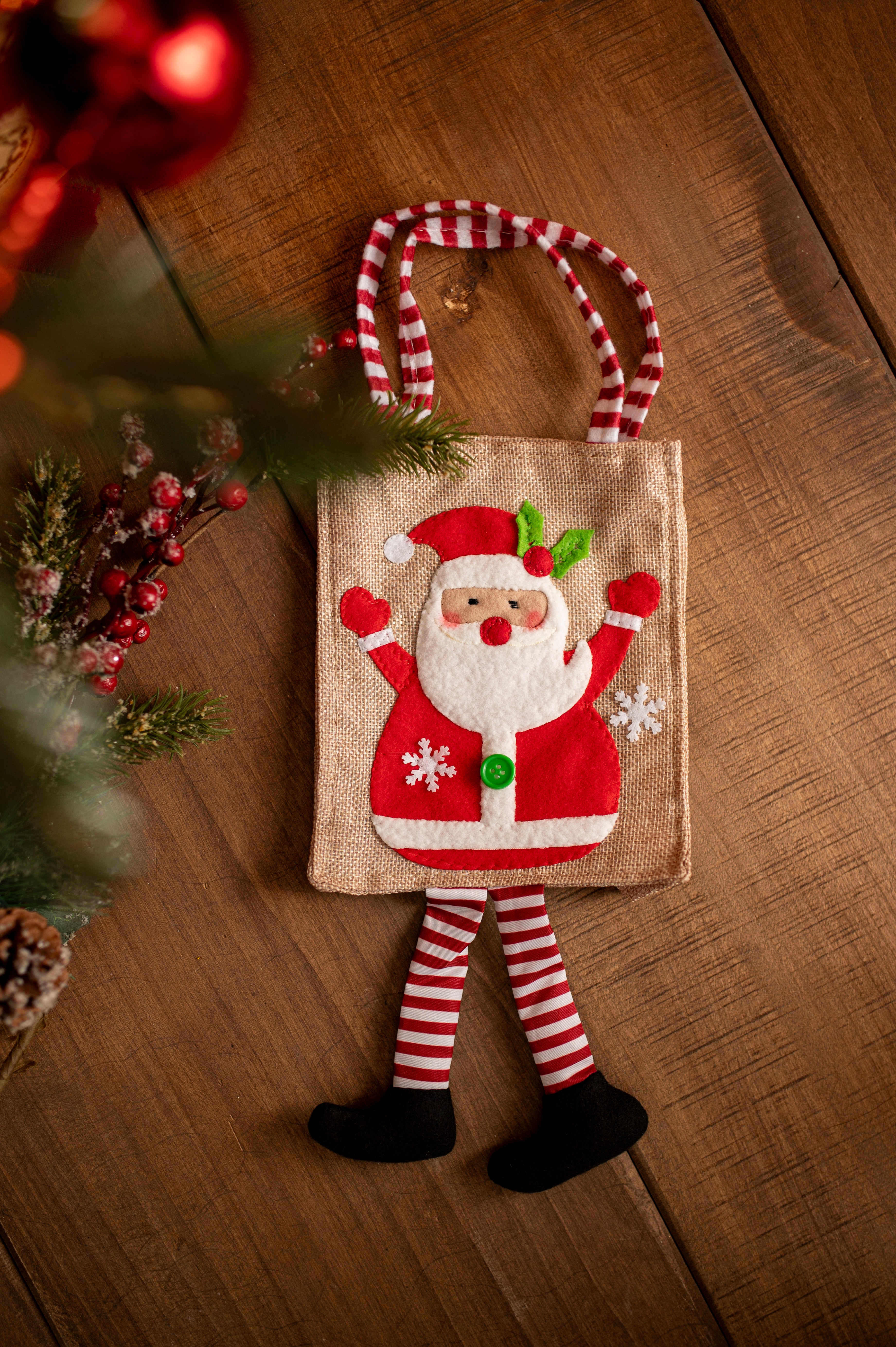 Podaruj swoim prezentom świąteczną magię. Wybierz jutową torebkę z Mikołajem i spraw, by każdy upominek wywołał uśmiech już przed otwarciem!
