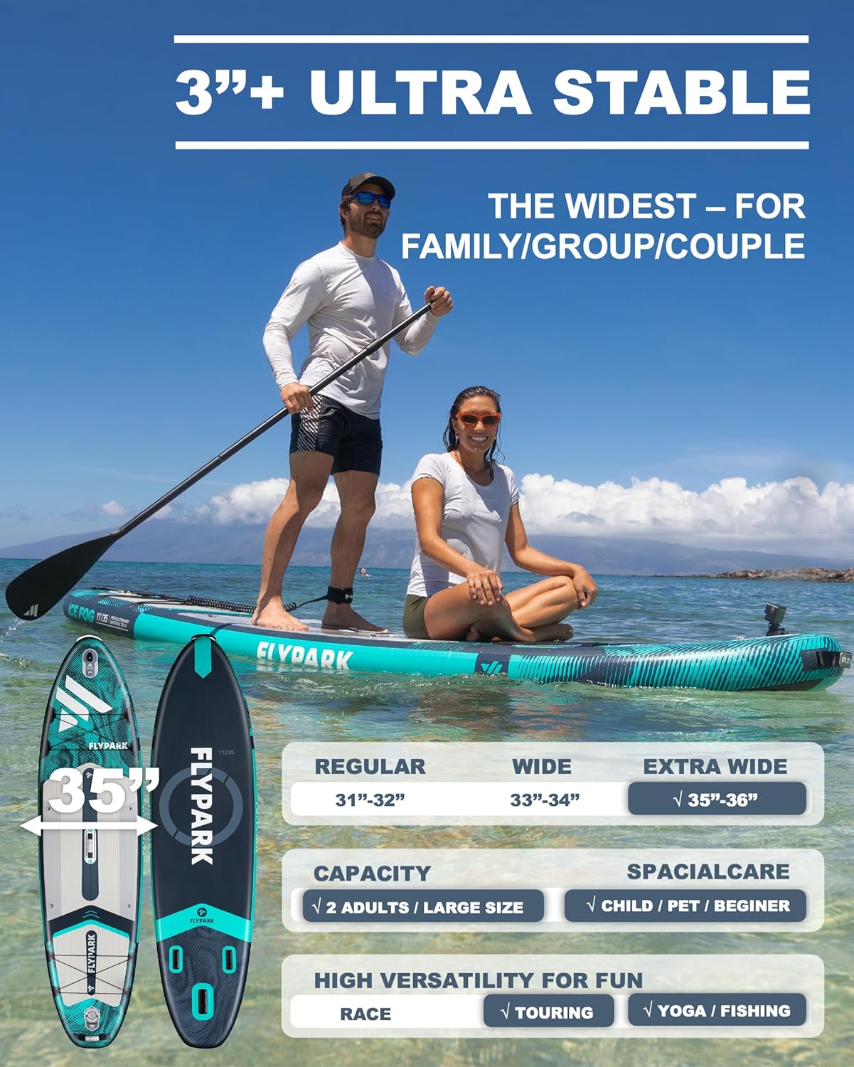 - Stabilitate și siguranță: Deck-ul larg și capacitatea mare de susținere garantează o navigare confortabilă pentru întreaga familie, și chiar pentru două persoane cu un animal de companie.