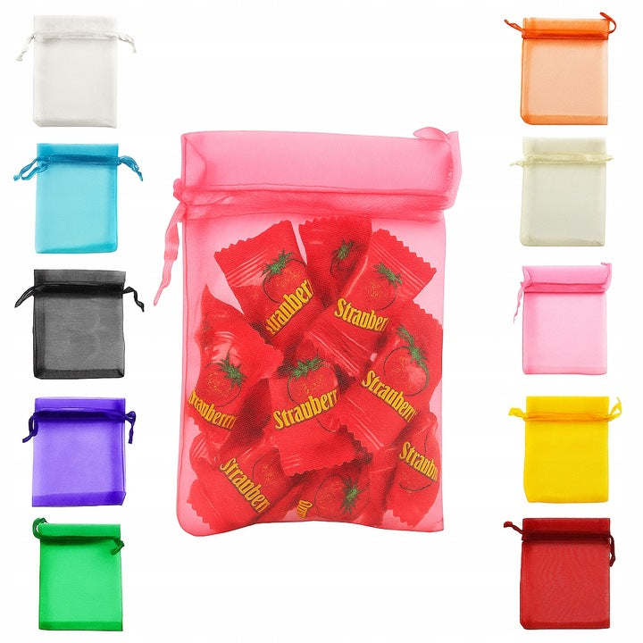 - Wielorazowe: Mocny splot organzy i solidne przeszycia pozwalają korzystać z woreczków wiele razy