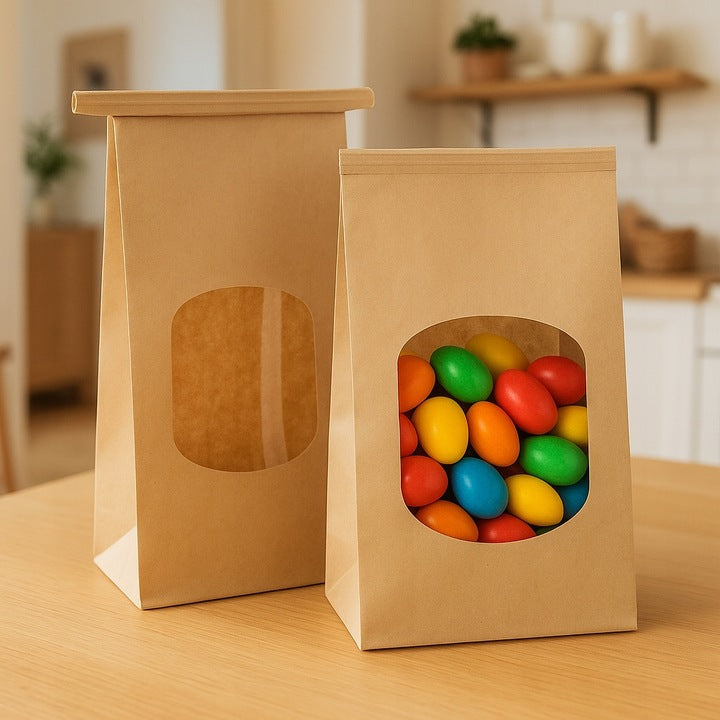 Utilizare variată: Datorită versatilității lor, pungile de hârtie pot fi folosite în diverse domenii, de la magazine alimentare, meșteșugărești până la magazine de construcții. Sunt ideale și pentru produse vândute la greutate, cum ar fi boabe de cafea, ceaiuri uscate, produse vrac, dulciuri și alte articole.