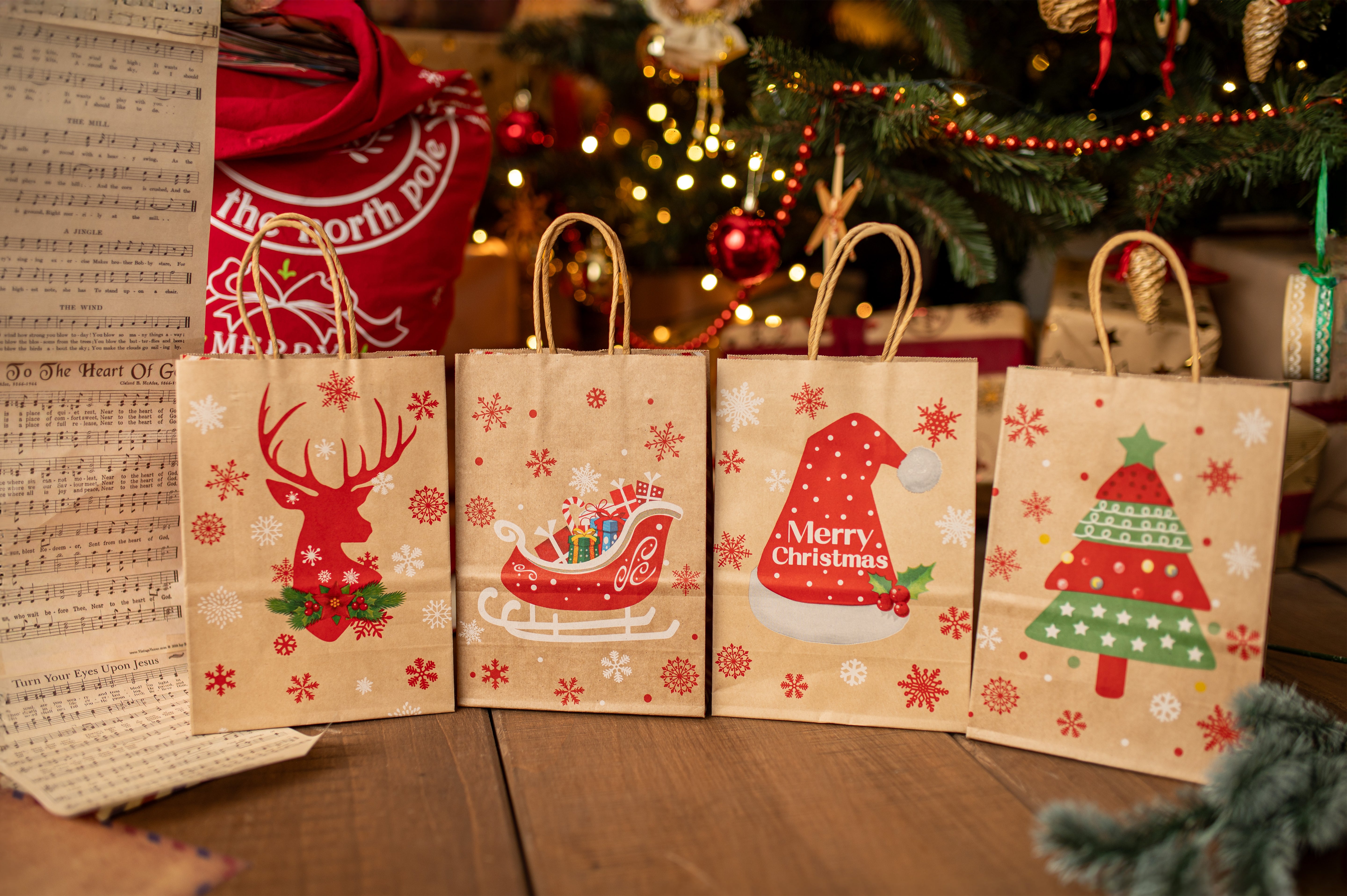 - Zastosowanie: Torby papierowe są idealne do pakowania prezentów świątecznych, mogą także posłużyć jako torby na zakupy lub jako element dekoracyjny podczas świątecznych przyjęć