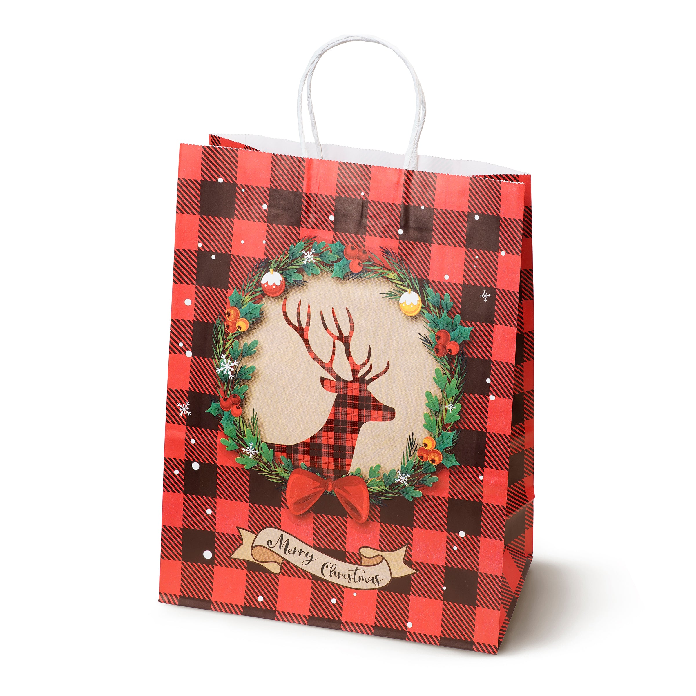 Torba papierowa świąteczna 150x80x210mm Mikołaj Choinka w Kratę 4szt.