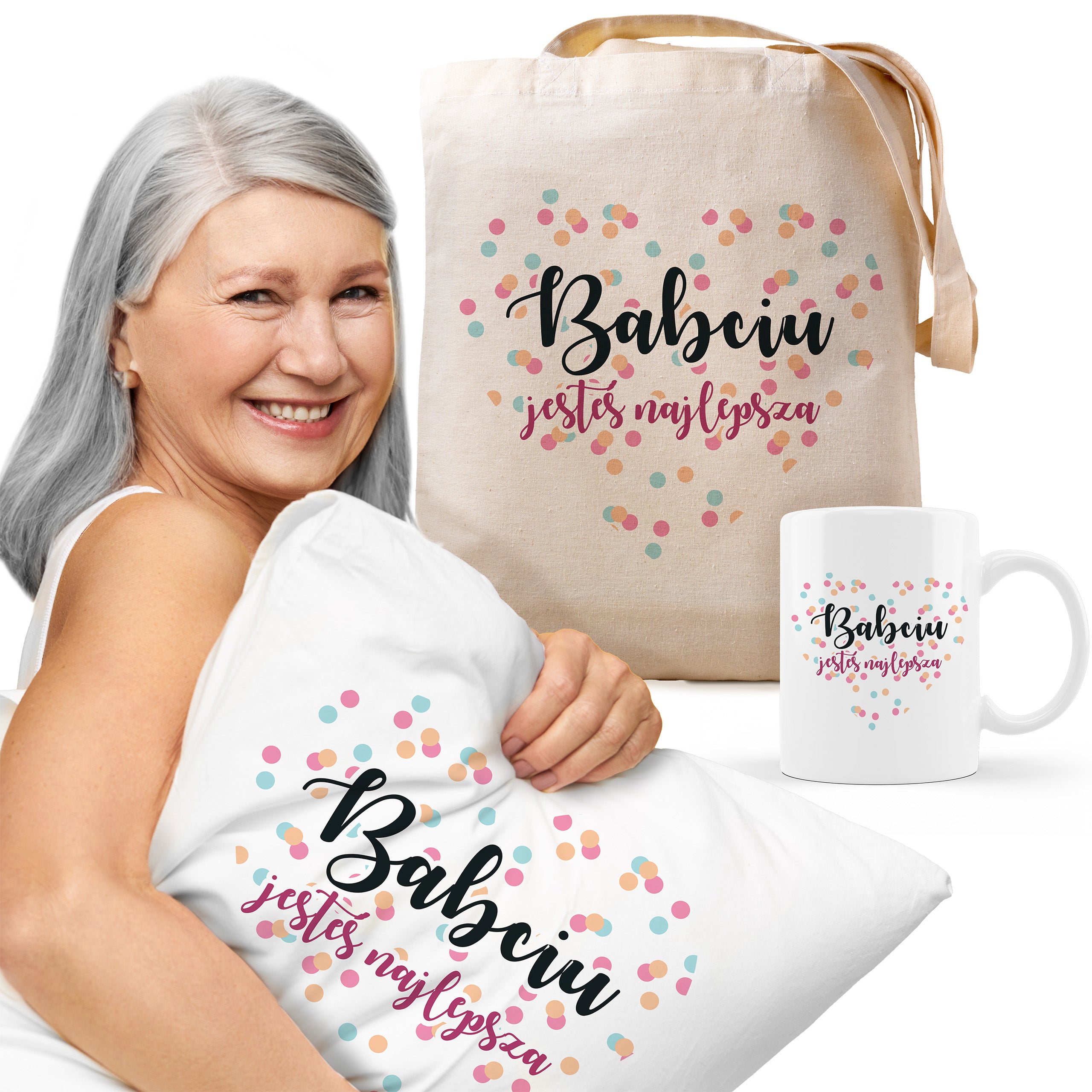 Set sac de bumbac, cană, pernă Bunica ești cel mai bun cadou pentru ziua bunicii