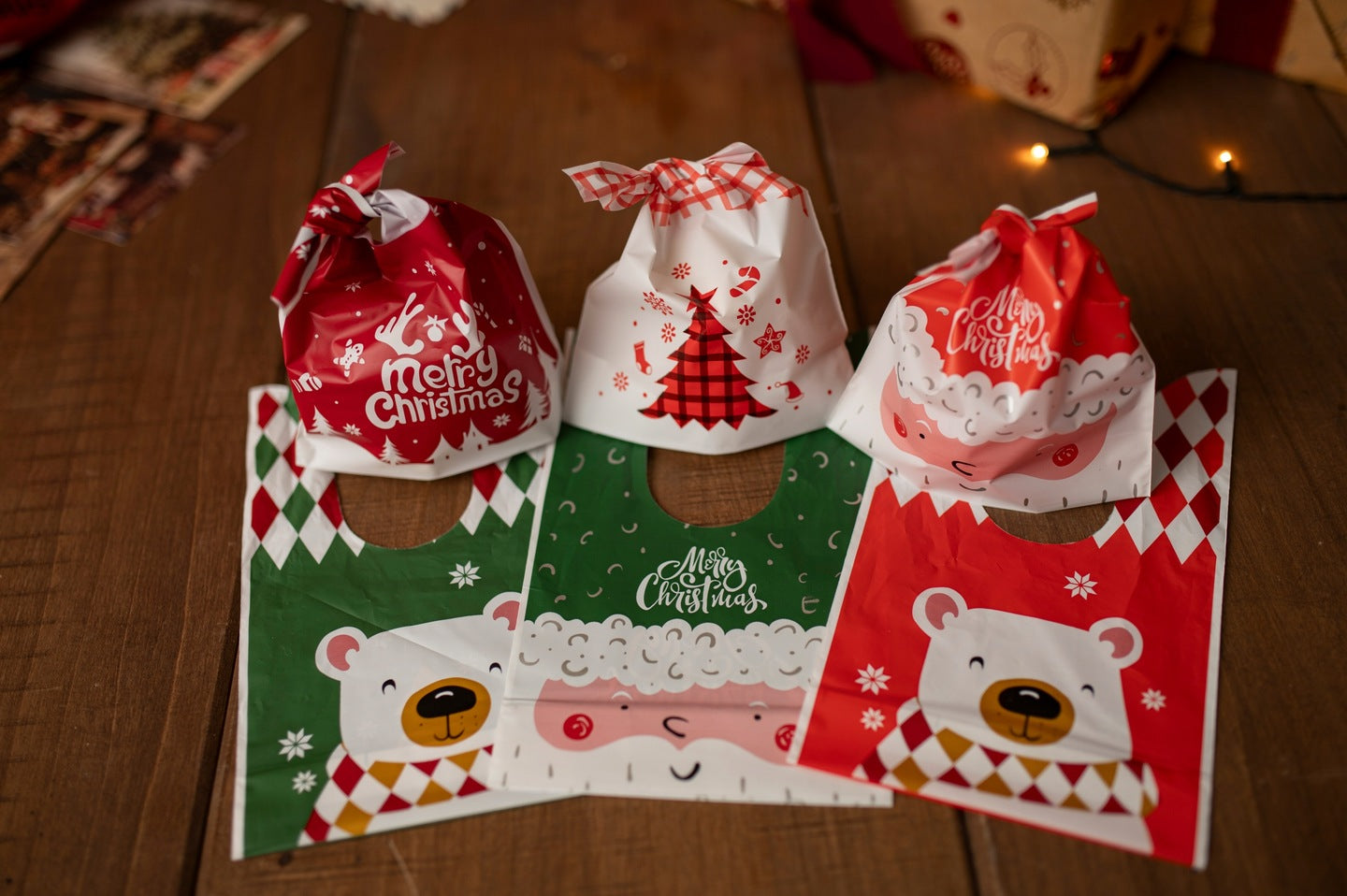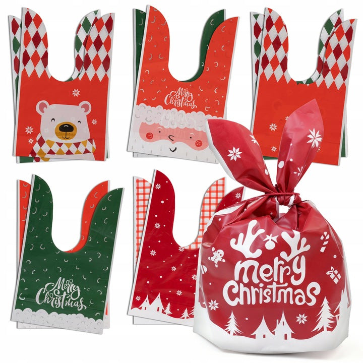 Świąteczne woreczki na prezenty 12szt. na cukierki i prezenty 14×24 cm. Postaw na ozdobne woreczki foliowe na urodziny, Mikołajki i Boże Narodzenie. Pakuj słodycze i drobne upominki szybko, czysto i efektownie!