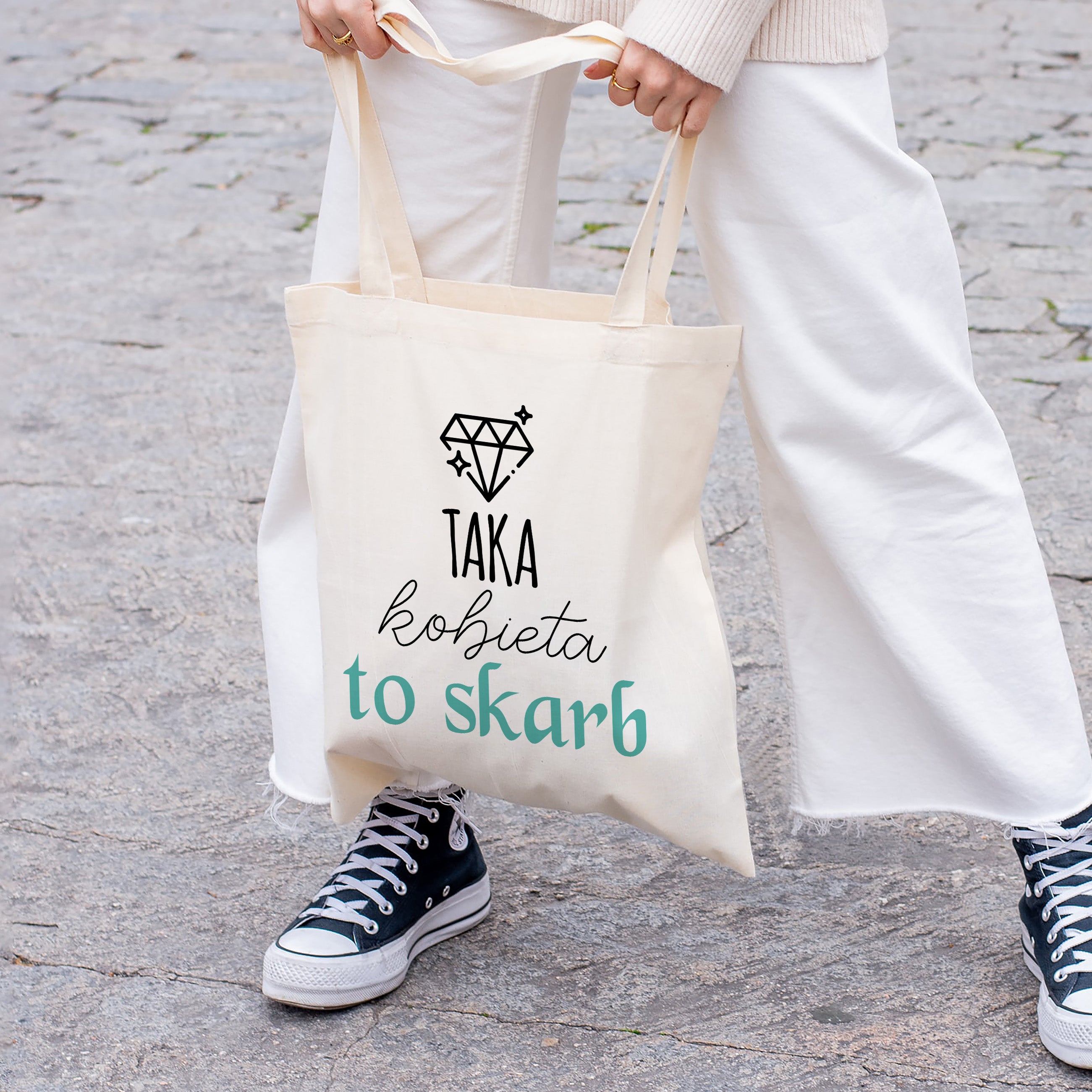 Cadou de Ziua Femeii - geantă imprimată ecru