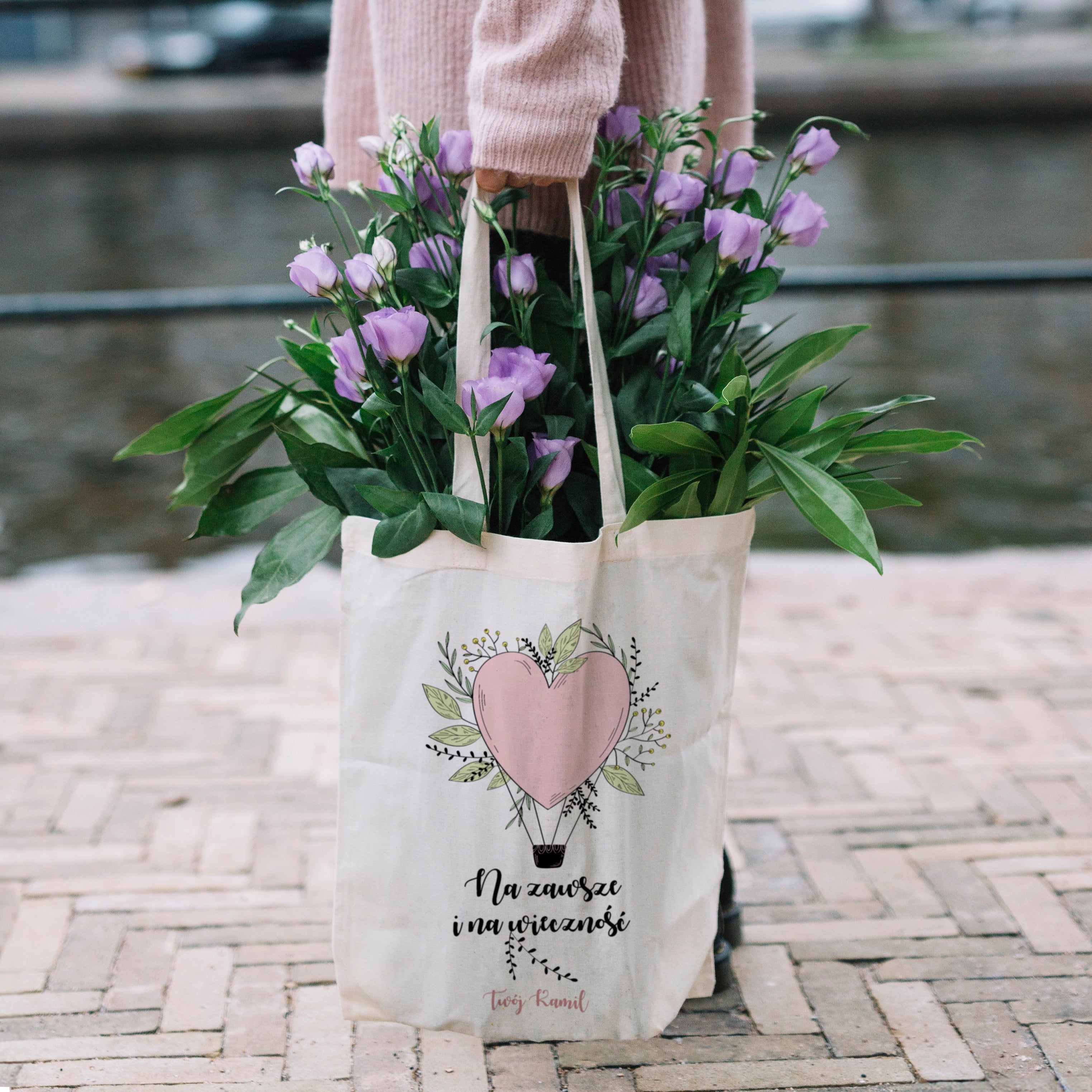 Prezent na Walentynki - Torba z nadrukiem ecru