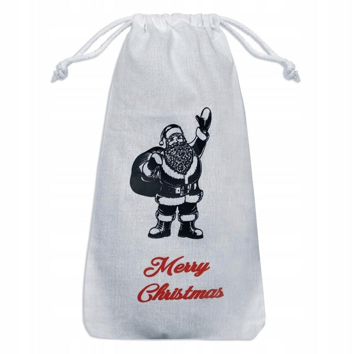 Woreczek bawełniany świąteczny 15x20cm BIAŁY MIKOŁAJ MERRY