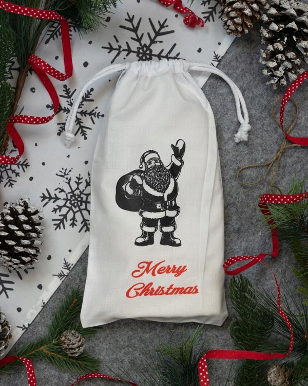 Sacii din bumbac prin designul lor unic sunt perfecti pentru perioada Crăciunului. Pot fi folosiți, de exemplu, ca ambalaj pentru cadouri sau pentru uz personal.