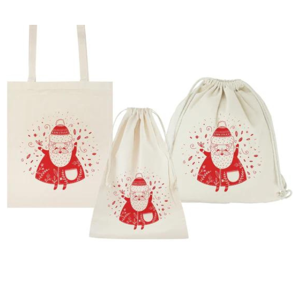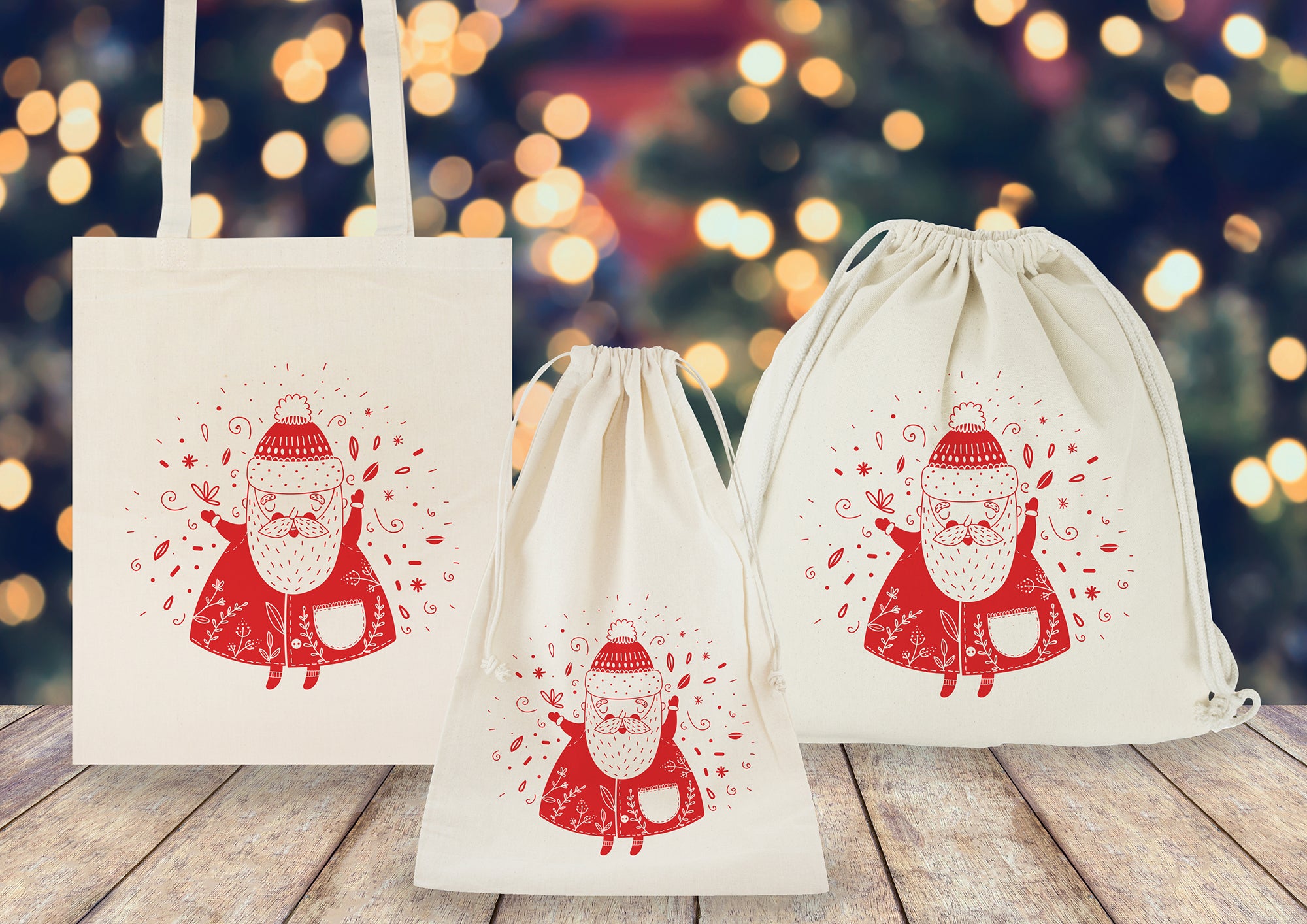 Calitate superioară: Setul de Crăciun a fost realizat cu atenție din bumbac de cea mai bună calitate - 145g/m2. Produsul este plăcut la atingere, durabil și ecologic, utilizat de mai multe ori. Setul are modele de Crăciun unice în formă de Moș Crăciun, care adaugă farmec produselor.