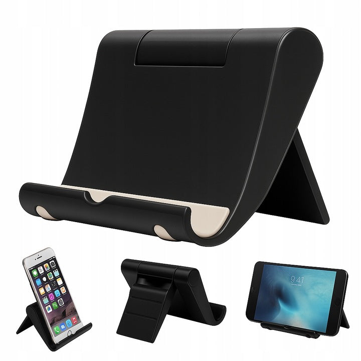 Czarny składany stojak na telefon i tablet z regulacją 270°. Stojak biurkowy do filmów, wideorozmów i pracy. Dodaj do koszyka i zyskaj wygodę użytkowania bez trzymania urządzenia w rękach w domu, biurze i w podróży!