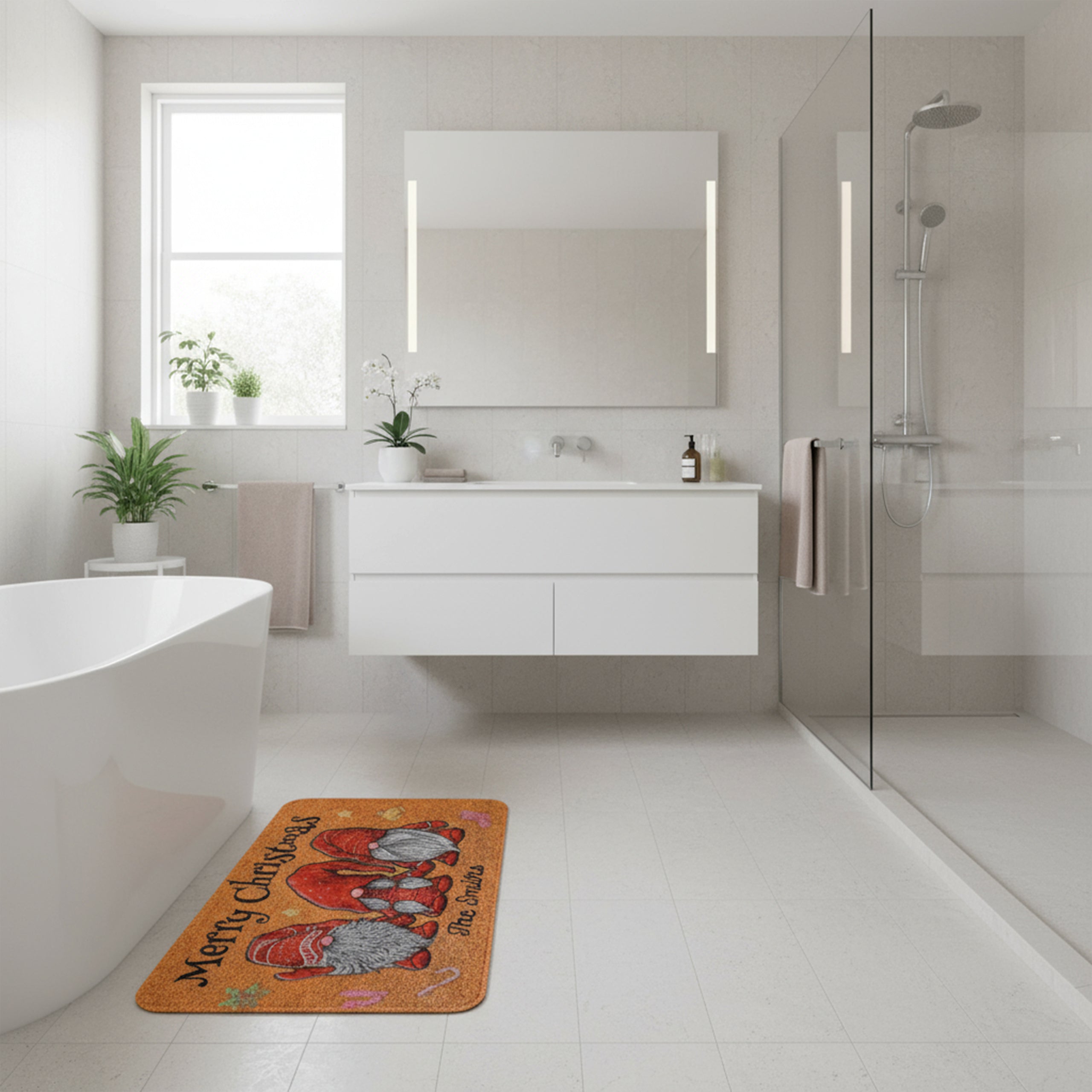 Wybierz dywanik świąteczny 60 x 40 cm z krasnalami. Mata wejściowa, która zatrzymuje brud i tworzy bożonarodzeniowy klimat już od progu. Postaw na praktyczną dekorację Bożego Narodzenia, która ociepla wnętrze i chroni podłogę!