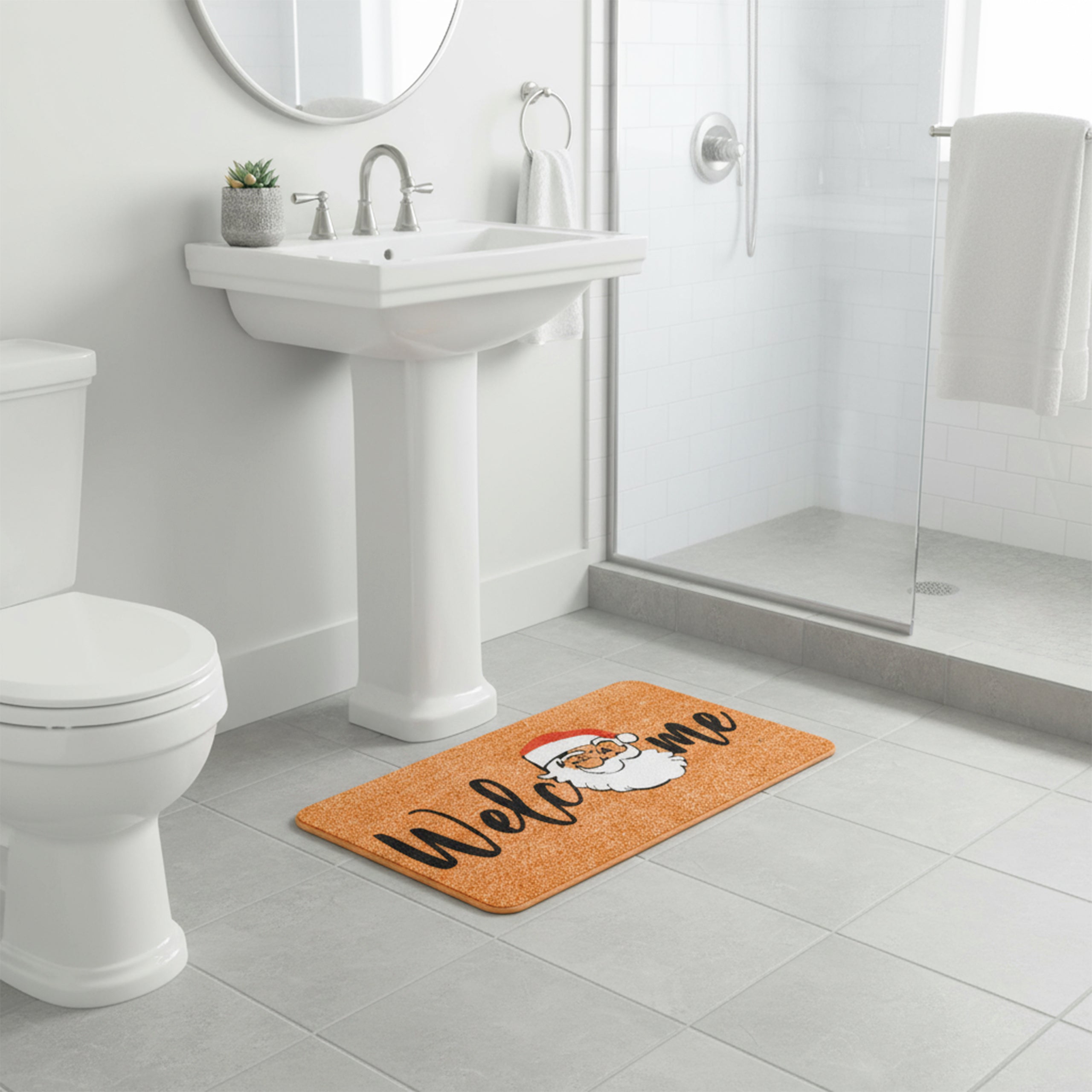 Wybierz dywanik świąteczny  80 x 50 cm z mikołajem. Mata wejściowa, która zatrzymuje brud i tworzy bożonarodzeniowy klimat już od progu. Postaw na praktyczną dekorację Bożego Narodzenia, która ociepla wnętrze i chroni podłogę!