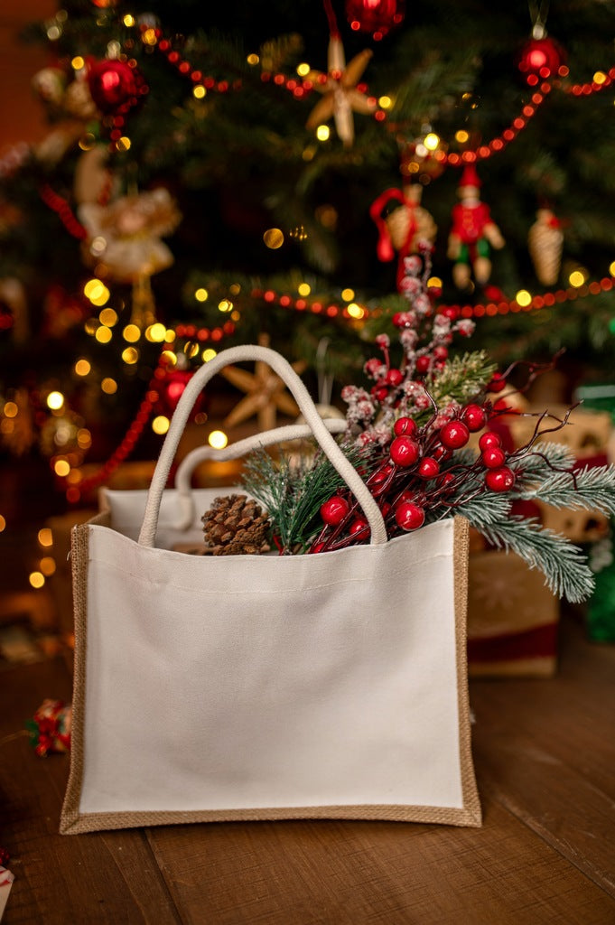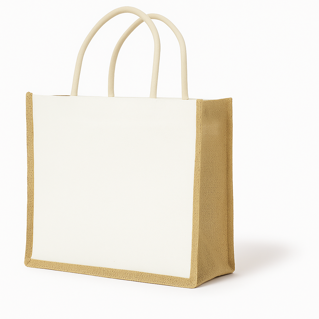 Wybierz stylową ekologiczną torba jutowo bawełnianą  z uchwytami  trwałą, elegancką i przyjazną środowisku. Idealna do miasta, na zakupy i jako ekologiczny prezent