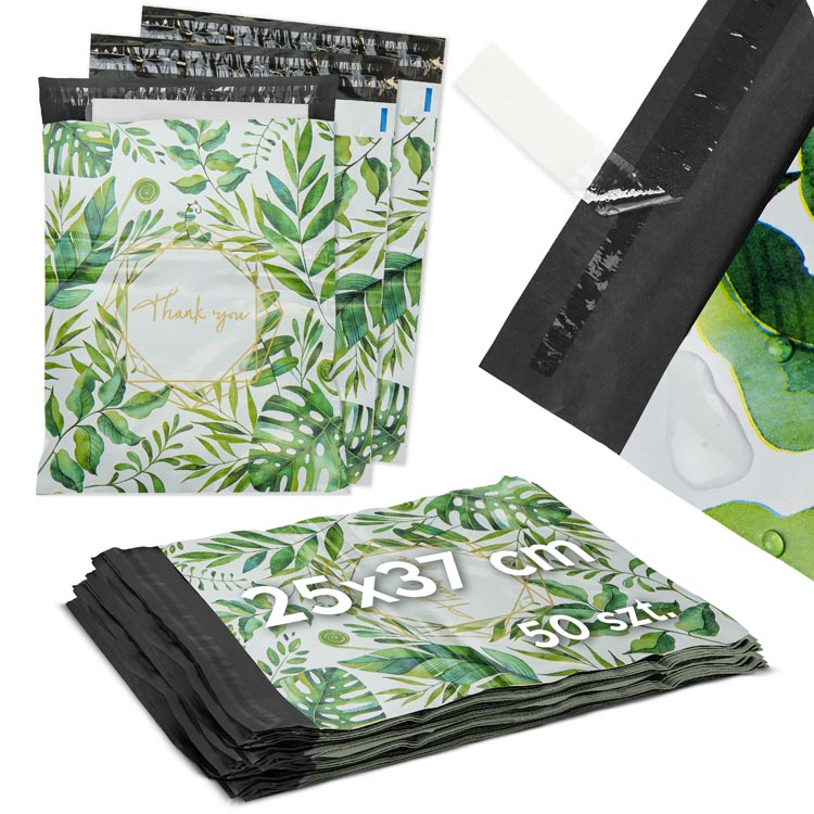 Pachete de folie Courier 255x370mm 50 buc. VĂ MULȚUMESC FRUNZE VERZI Acesta este comandat cu întârziere și va fi expediat de îndată ce va fi din nou în stoc.