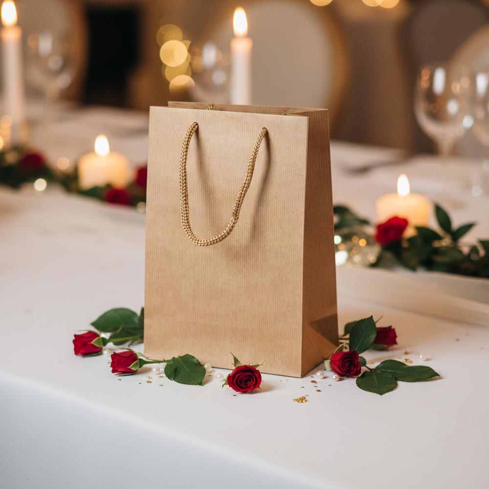 Pungile ECO prestige sunt ideale pentru cadouri. Special pentru dvs., avem 4 dimensiuni diferite de pungi prestige, fiecare adaptată pentru diverse produse. În plus, oferim 5 culori diferite: alb, maro, bleumarin, negru și verde. Punga prestige cu logo-ul companiei tale este perfectă pentru a-ți promova afacerea la târguri sau întâlniri de afaceri.