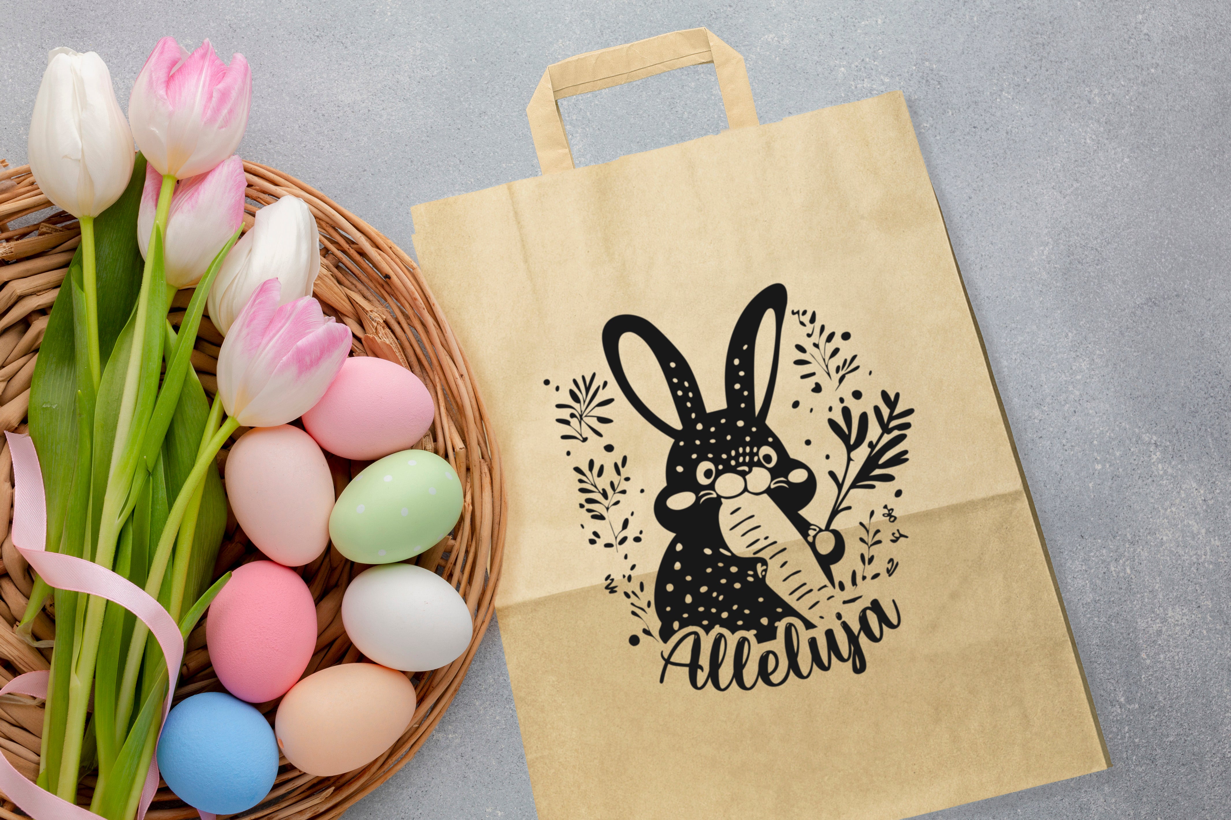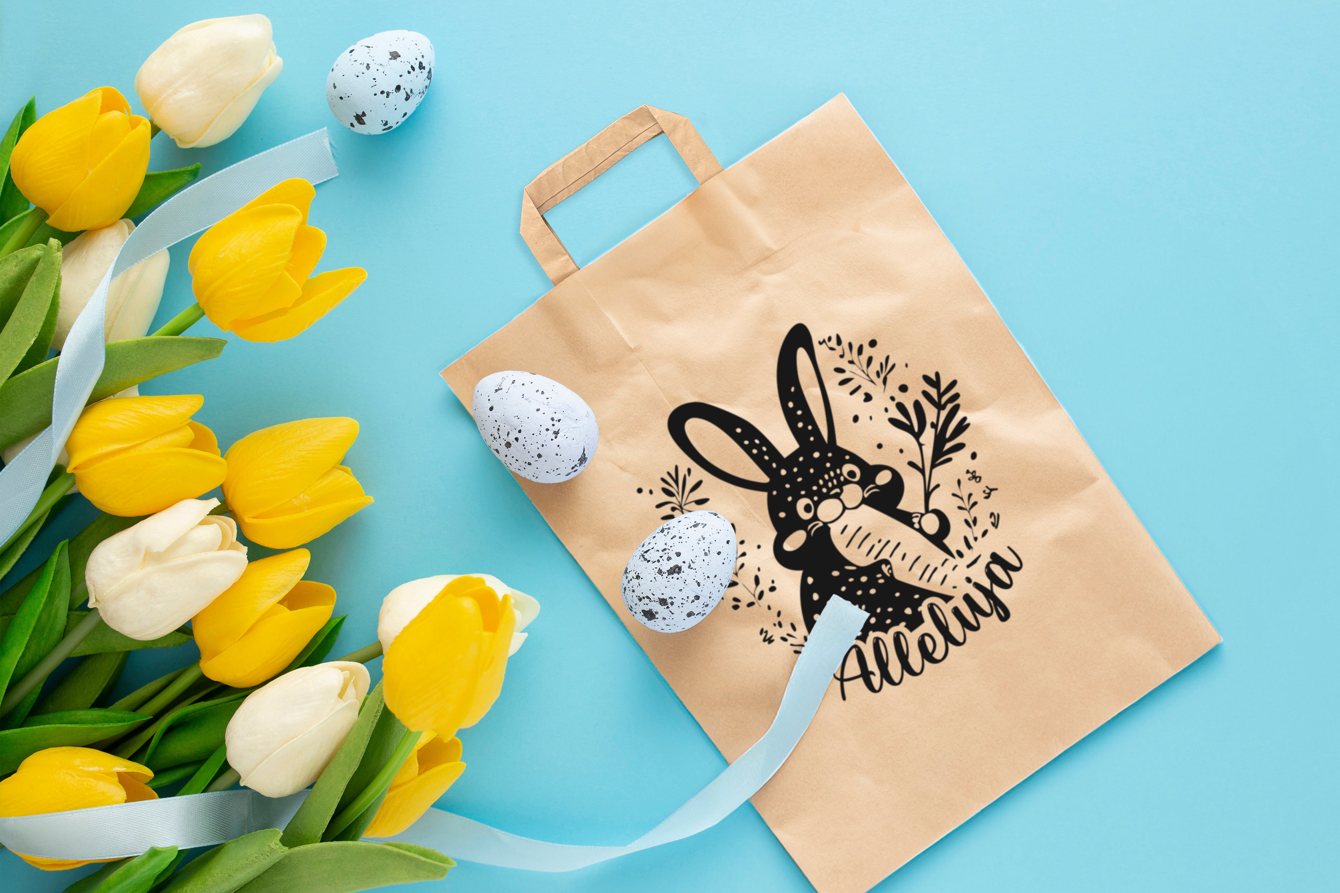 Motiv de Paște: Punga din hârtie cu motiv de Paște este un ambalaj drăguț și colorat, perfect pentru ambalarea obiectelor mici de Paște.